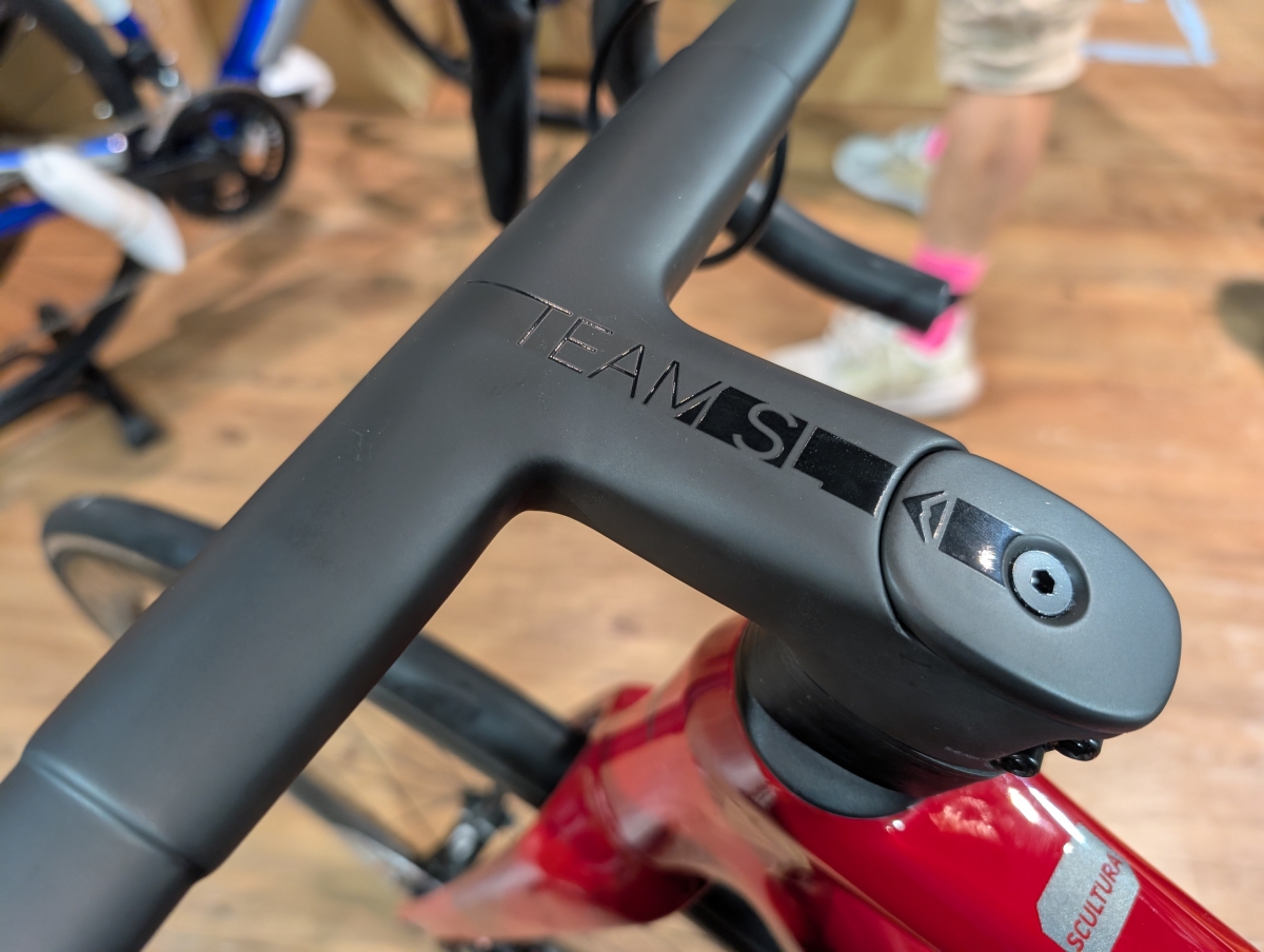 フレームはトップグレードのSCULTURA TEAMと同じものを使っていて、高剛性かつ軽量なフレームはスムーズなパワーの伝達と加速が気持ち良いです。剛性は高いですが振動吸収性に優れており、ロングライドでも疲れにくくなっています。また軽量さも持ち合わせているのでヒルクライムから平坦、レースからロングライドまで幅広い楽しみ方ができます。