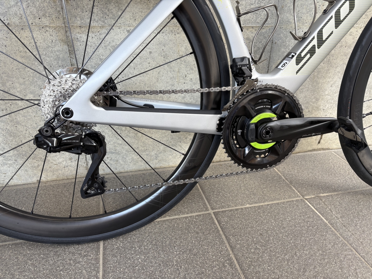 剛性感は乾いた硬さという事はなく、質感の高い上品な剛性の高さだと感じます。ホイール等の性格もあるかと思いますが、見た目から感じる重さは無く、体感としては逆に軽く感じるほどにバランスの高いエアロロードだと思います。まだロングライドは行っていないので長距離の適正がどれほどあるかは未知数ですが、短距離でも分割式のシートポストは、しっかりと仕事をしていますと感じるくらいには主張があり、快適性には期待が持てます。ちなみに重量はこの状態で実測8.1kgです。
