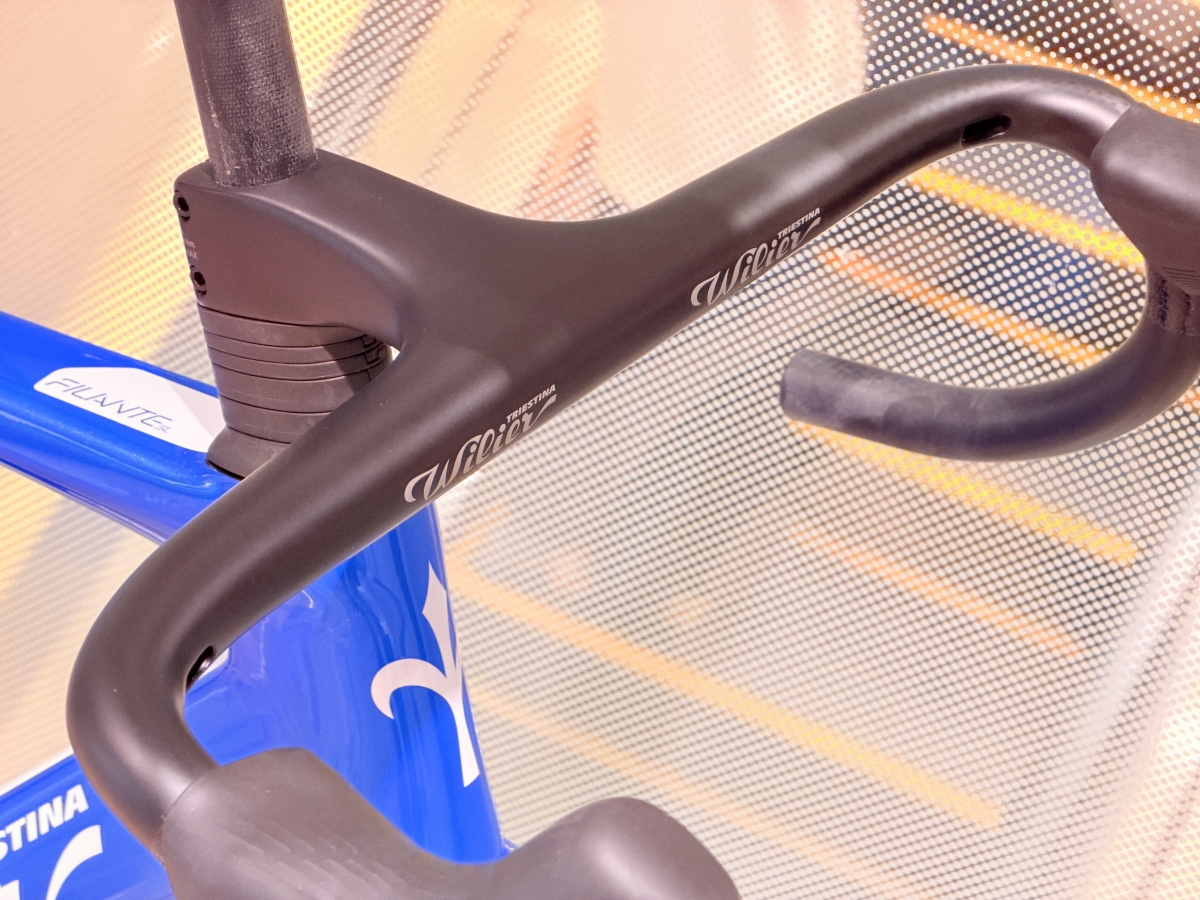 一体型ハンドルのWilier Z-BAR CARBONが標準装備されています。このパーツだけで10万円を越えます。見た目だけでなく空力も期待出来る完璧にマッチするセッティングです。
