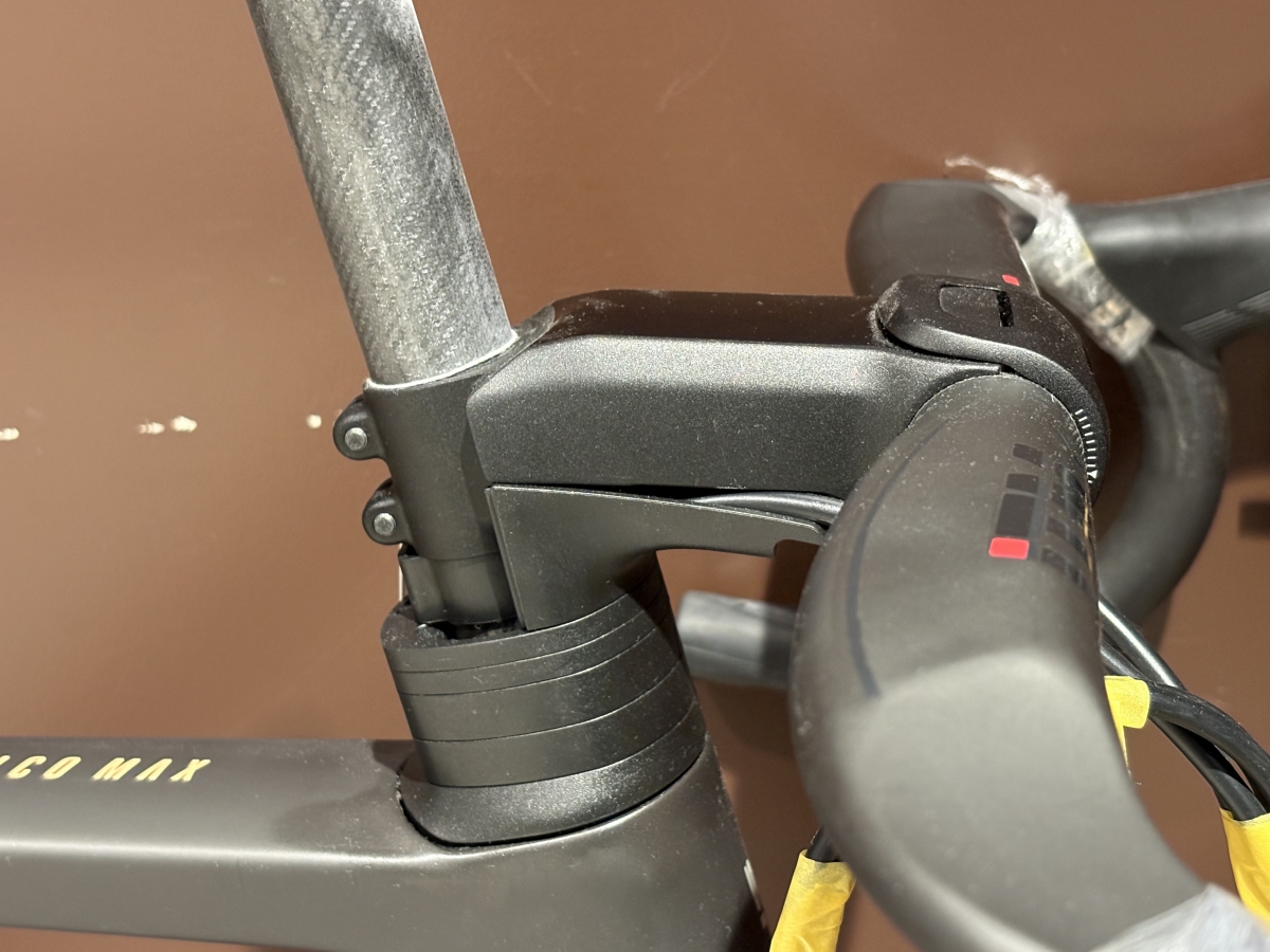 まずこの車体についての説明をいたします!空気力学に基づき設計され、よりエアロに硬く軽く設計された車体となっております!より高いボトムブラケット位置と、より立たせたヘッドアングルの組み合わせによって、機敏なハンドリングと優れた加速性を実現して高速でのコーナー安定性も抜群で、立ち上がりも力強い加速が可能な車体となっております!そして、軽量のC.I.S.ステムにケーブルは内装され、すっきりした外観と空力効果を実現。ハンドルバーステムは一体型ではなく取り外し可能となっており、メンテナンスのし易さとカスタマイズ性を高めています!