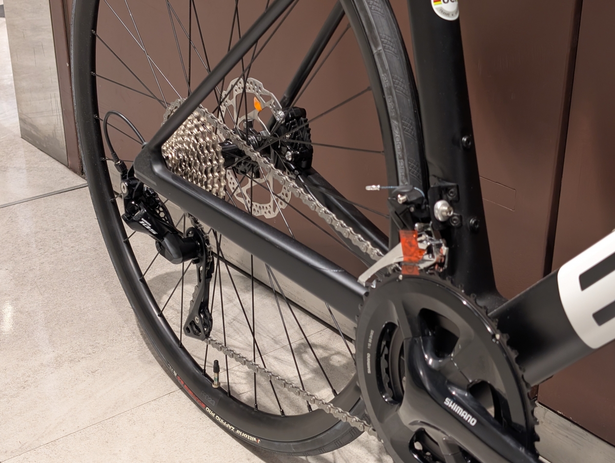 ホイールやタイヤを変えることによって快適性や軽量性が大きく向上します。特にカーボンホイールは軽量性抜群でヒルクライムやさらなるスピードを求めている方にはピッタリです。コンポーネントを変えてしまうのもおすすめです。電動コンポーネントは機械式よりもスムーズで軽いレバー操作で済むので一度使えばもう戻れないほどです。またこの車体はポジション調整がやりやすいので自分好みのポジションとパーツで様々な楽しみ方ができる一台です。