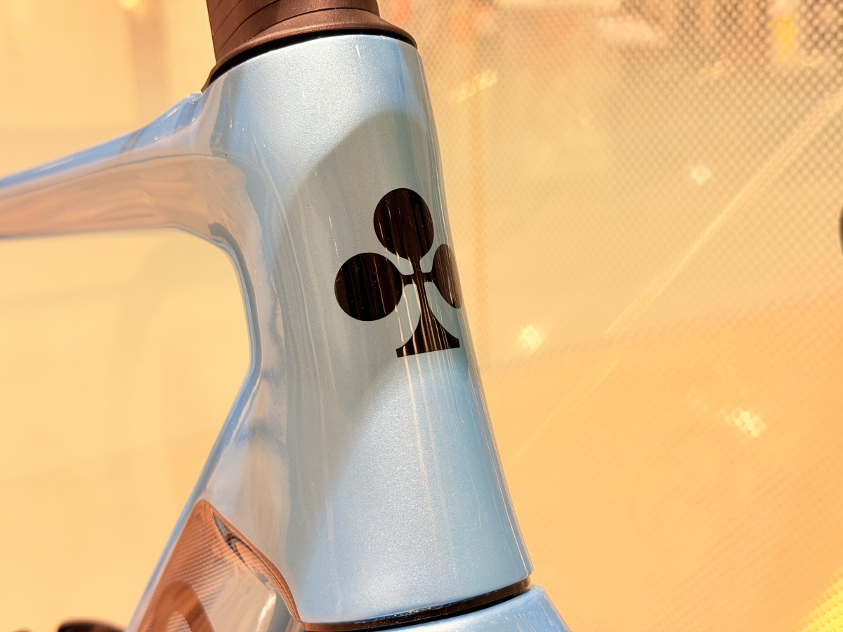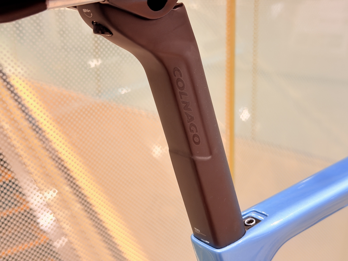ケーブル類は専用のコルナゴ・SR10アロイステムの下側から導かれ、ヘッドチューブへ収納される為、見た目もスッキリです。