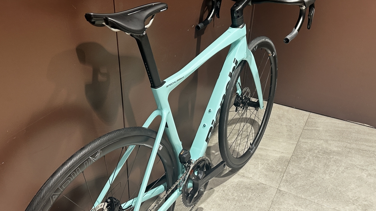 BIANCHIのレーシング部門であるレパルトコルサが開発した新型Specialissima。は軽量系のオールラウンダーです。ベーシックモデルCOMPは純粋なチェレステカラーのラインナップを唯一用意するグレードです。