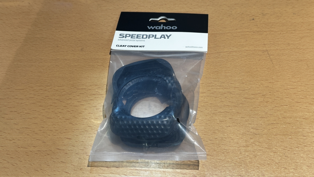 スピードプレイのクリートカバーです。シューズ(クリート)にペダルをはめ込む、つまりクリート側がメスになっているのでクリートカバーは中央が大きくくり抜かれたような形状。ゴルフボールのようなディンプルがスピードプレイだなぁと思わせる独特な仕上げだと思います。