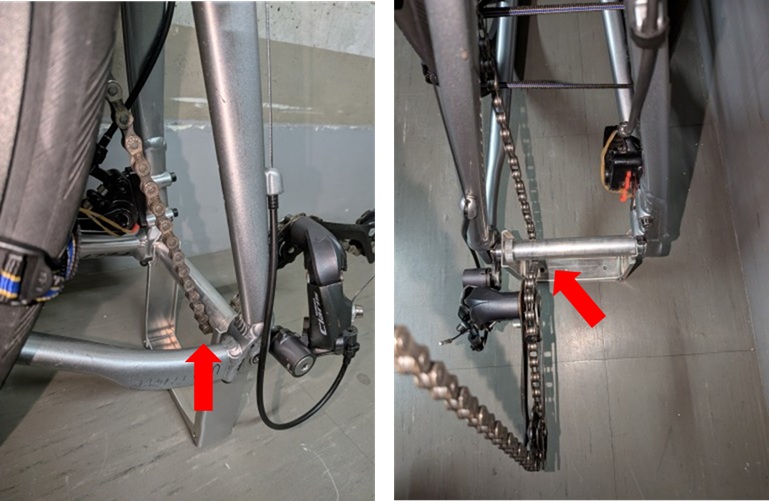 こうすることで輪行中、チェーンがプラプラして車体にキズをつけるリスクを軽減しているのです。