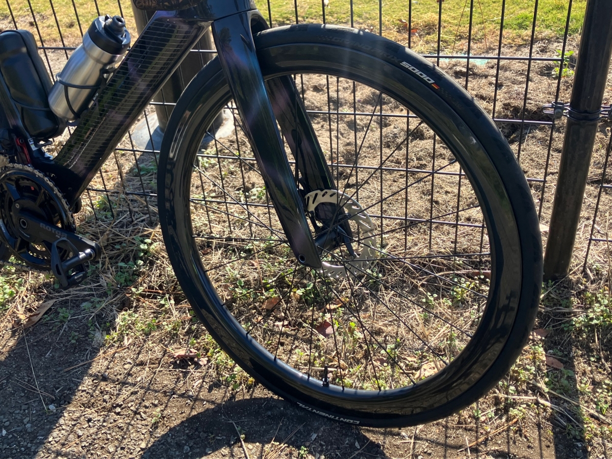 試乗ホイールにはコンチネンタルGP5000の28CとTPUチューブがついていました。