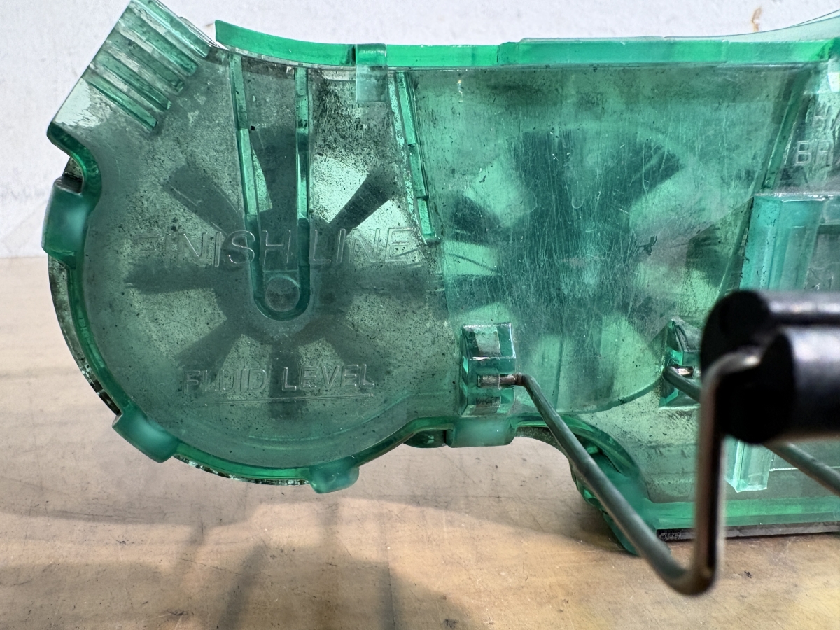⑤チェーンからツールを外し、汚れたディグリーザーを捨てる