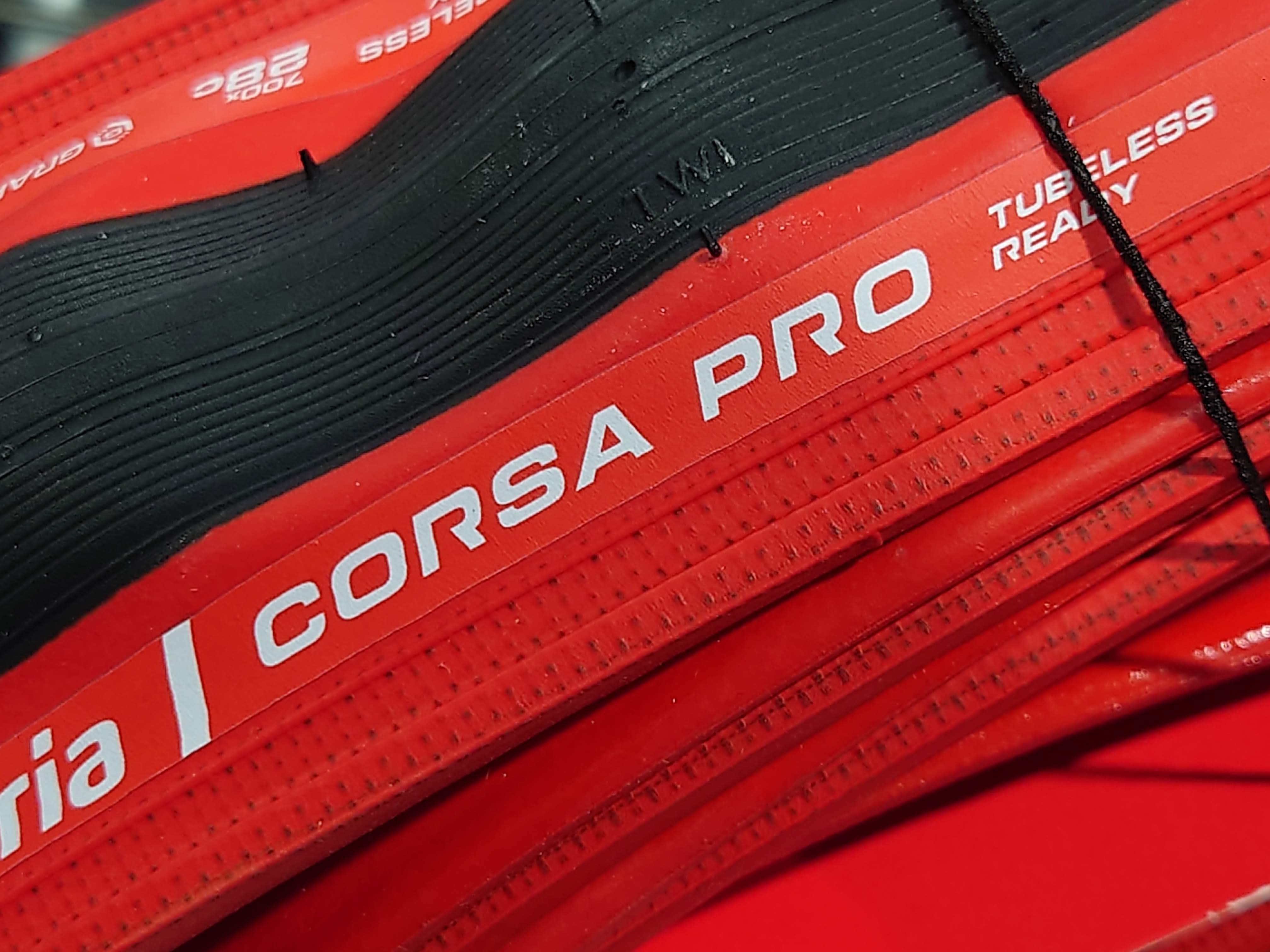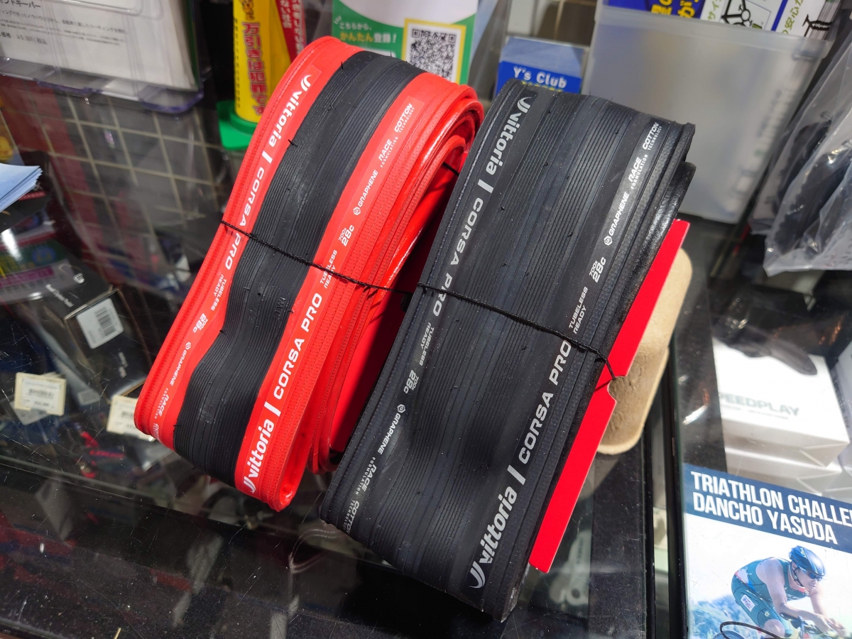 こちらは上記と同じCORSA PROのブラックバージョンです。CORSA PROは通常モデルだとサイドウォールがケーシングの色ですが、ブラックカラーが無かったため車体のカラーなどと併せてブラックにしたかった方には待望のタイヤです。