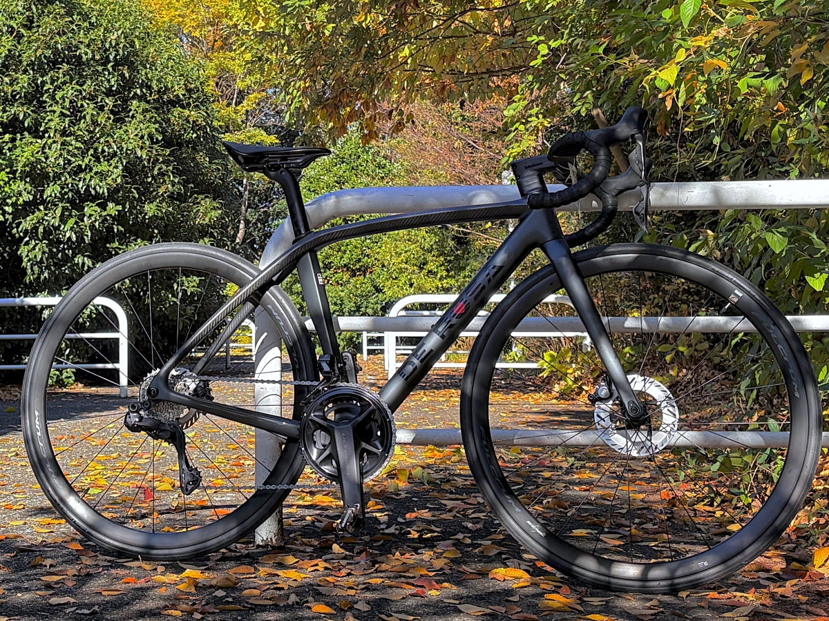 完成車に付属するアルミホイールから変えれば更なる変化を得られるはず、フレーム性能の底はまだまだ深そうなロードバイクですね。