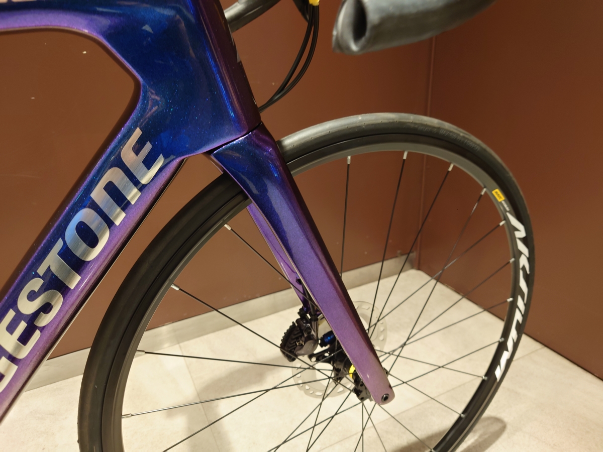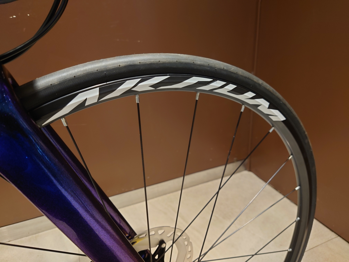 ホイールはMAVIC AKSIUM DISCを採用。こちらはフレームに対して考えると低いグレードのホイールなのでアップグレードがオススメです。
