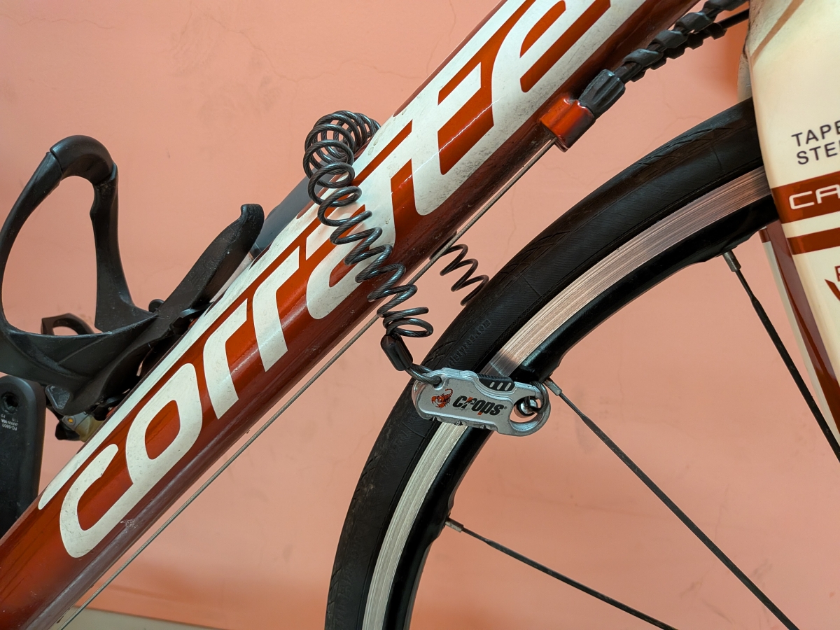 (メインのカギでフレーム&後輪をガードレール etc に固定。小さい鍵で前輪とフレームを固定。こうすれば前輪だけ盗まれるようなこともなくなります。)