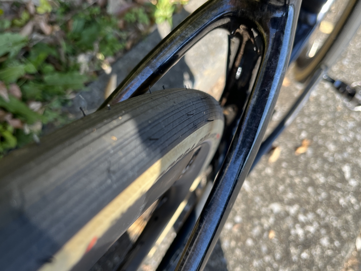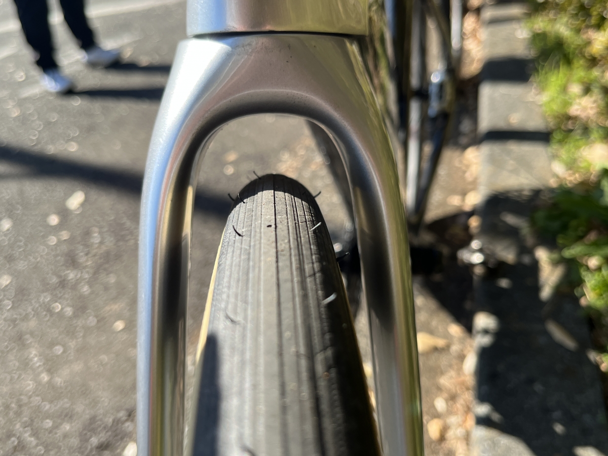 700x32Cのタイヤを装着した状態で、このクリアランスの余裕さです。これならグラベルロードとしても使用できて一石二鳥です!