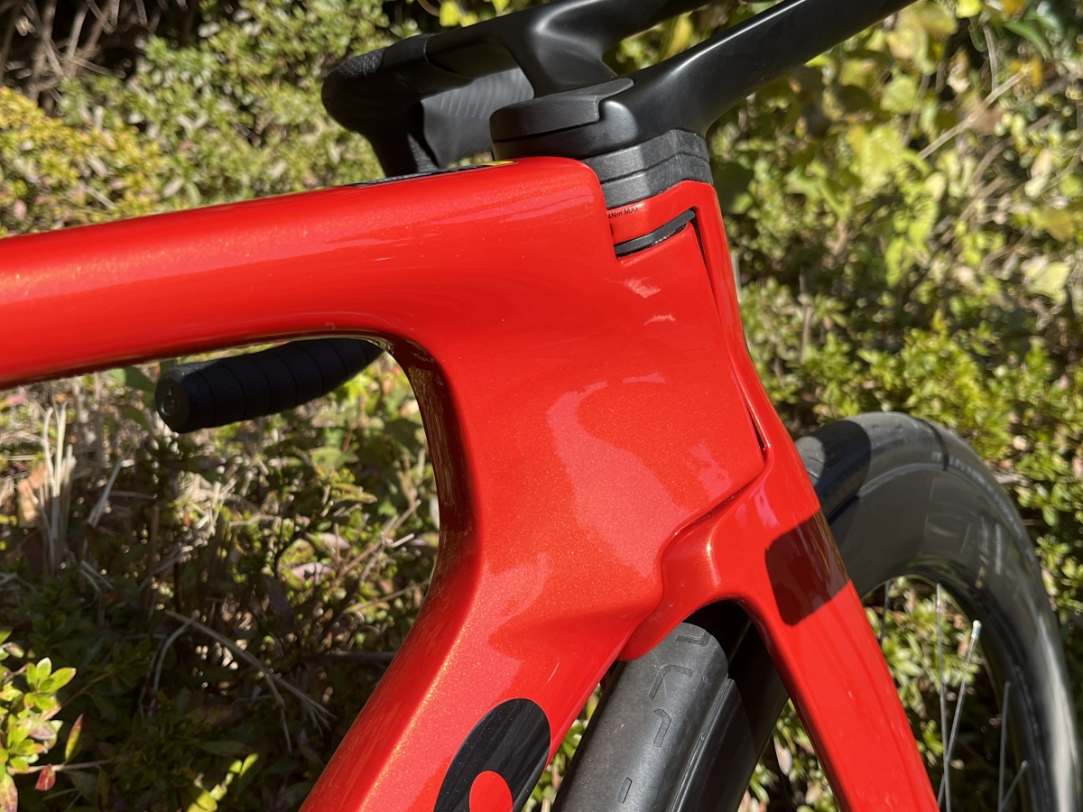 感想としては、最新のレースバイクらしくかなりしっかりとした剛性があり、加速の機敏さや高速域の巡航維持のしやすさなど、エアロロードらしさを感じられました。試乗コースは平坦路だったので上りでの走りについてはわかりませんでしたが、ある程度のパワーを維持して速く走れる方であれば、このバイクでなんでもこなせるのではないかと感じました。
