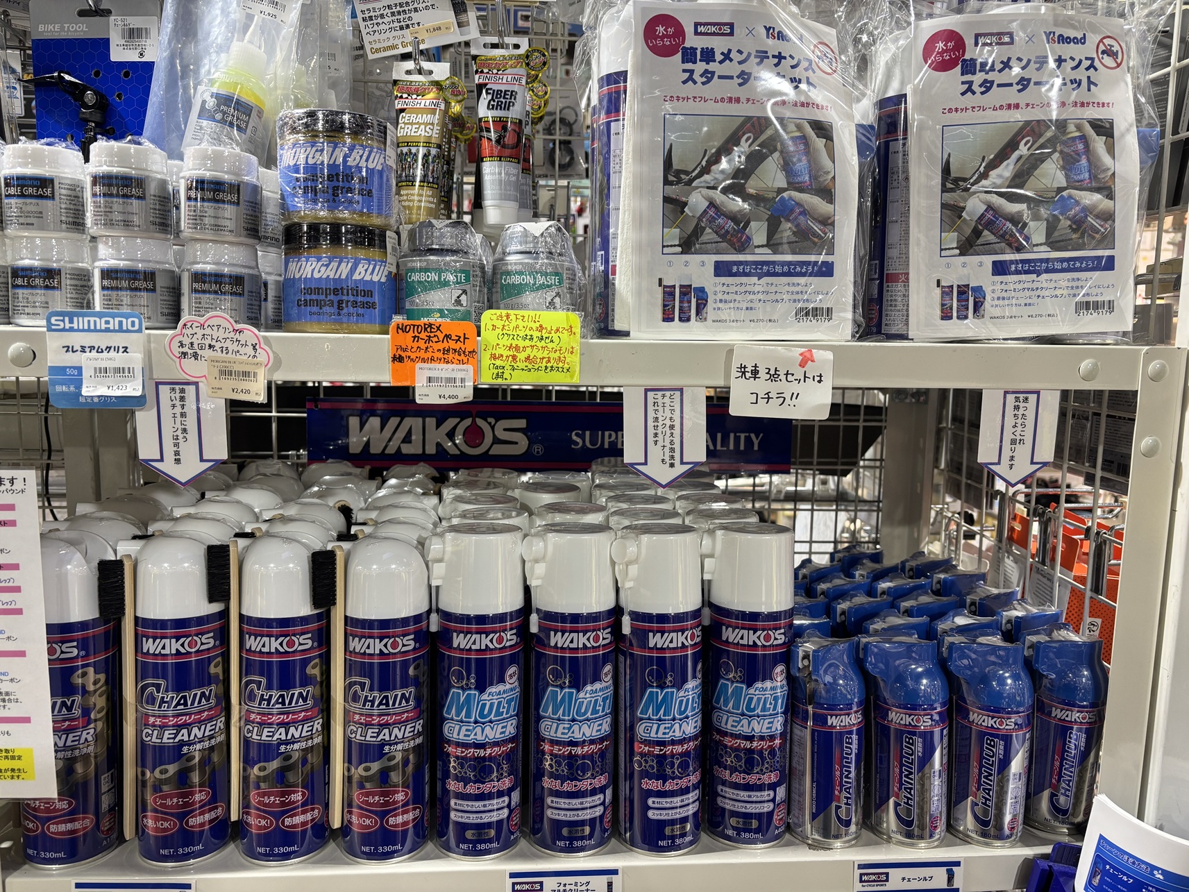 各メーカーさんとお話しさせていただくと、海外に比べると日本はオーナー様自身で車体のメンテナンスをする方の割合が少ない、というお話を伺いました。スポーツバイクはメンテナンスによって使用できる長さも変わってきます。ワイズロード新宿本館ではスポーツバイクのメンテナンス用品を多数揃えています。気になる方は店頭にてスタッフまでお問合せください。