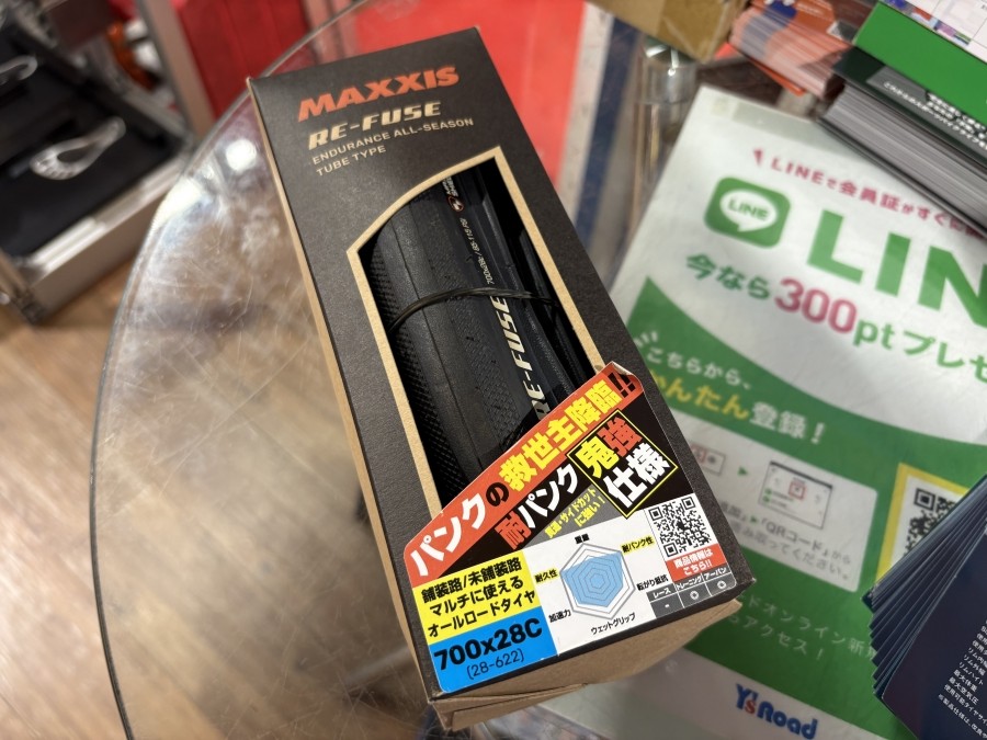 実直な造りで個人的な推しのメーカーMAXXISより耐久性がウリのRE-FUSEをご紹介いたします。MAXXISといえばMTBタイヤというイメージが強いですが、ロードタイヤもコストは抑えめで性能の高いタイヤが数多くリリースされています。そのなかでもRE-FUSEは耐久性が高く、トレーニングから街乗りなど長距離走行が多い方にオススメです。ロードだけでなくクロスバイクなどのアップグレードにもおすすめのタイヤです。