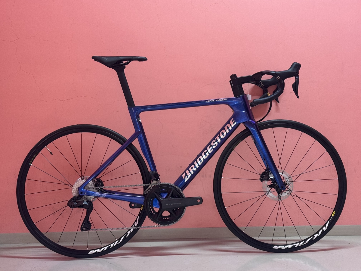 ANCHORが誇るハイエンドディスクロード・RP9。ステージレースを1台で戦えるということをコンセプトにし開発を行なっております。BRIDGESTONEのトラックフレームは国際大会で使用され、ナショナルチームなどが数多くの大会使用し、実績を上げております。そのため開発にあたってBRIDGESTONEの強みであるトラックバイクの開発技術を惜しみなく使用しています。空力はもちろん剛性・重量の最適バランスを追求したオールラウンダーバイクに仕上がり、平地での高速巡行や登坂、そしてアタックと複数の環境が入り乱れるコースでも、柔軟にその性能を発揮できる仕様になっております。