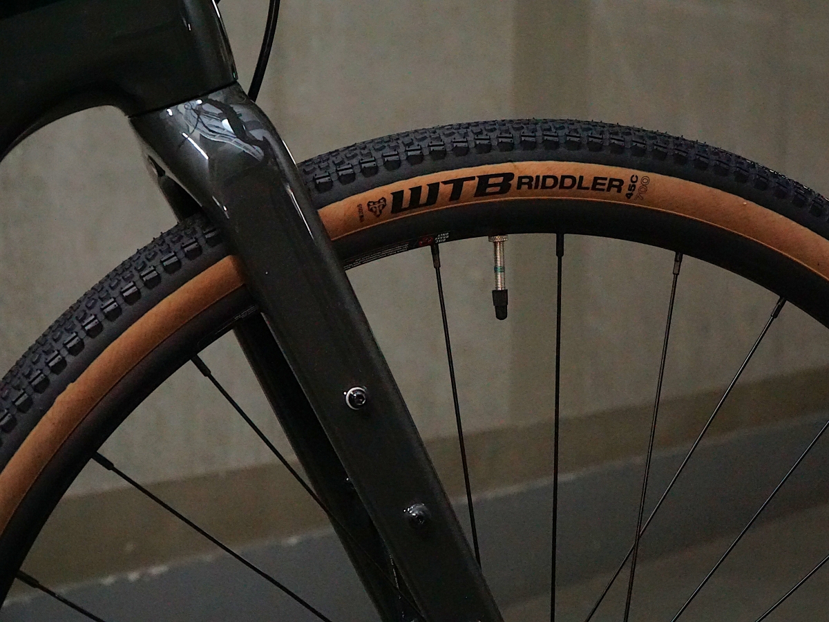 最大タイヤクリアランスは45mmまでとなっており、標準で45cタイヤ『WTB RIDDLER』を採用。