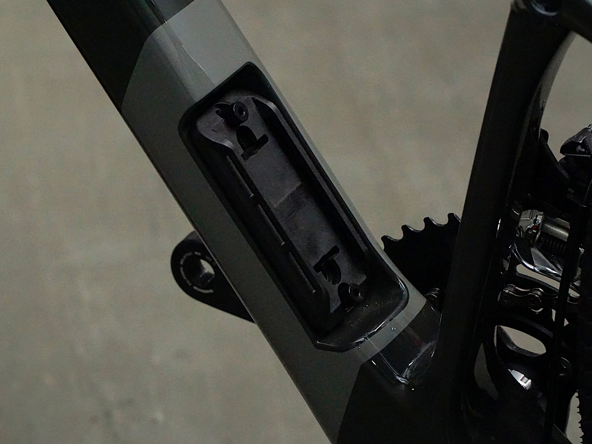 ダウンチューブのボトルケージ下にはチューブや携帯ツールをストラップで固定が出来る『ストラップラック』あり。