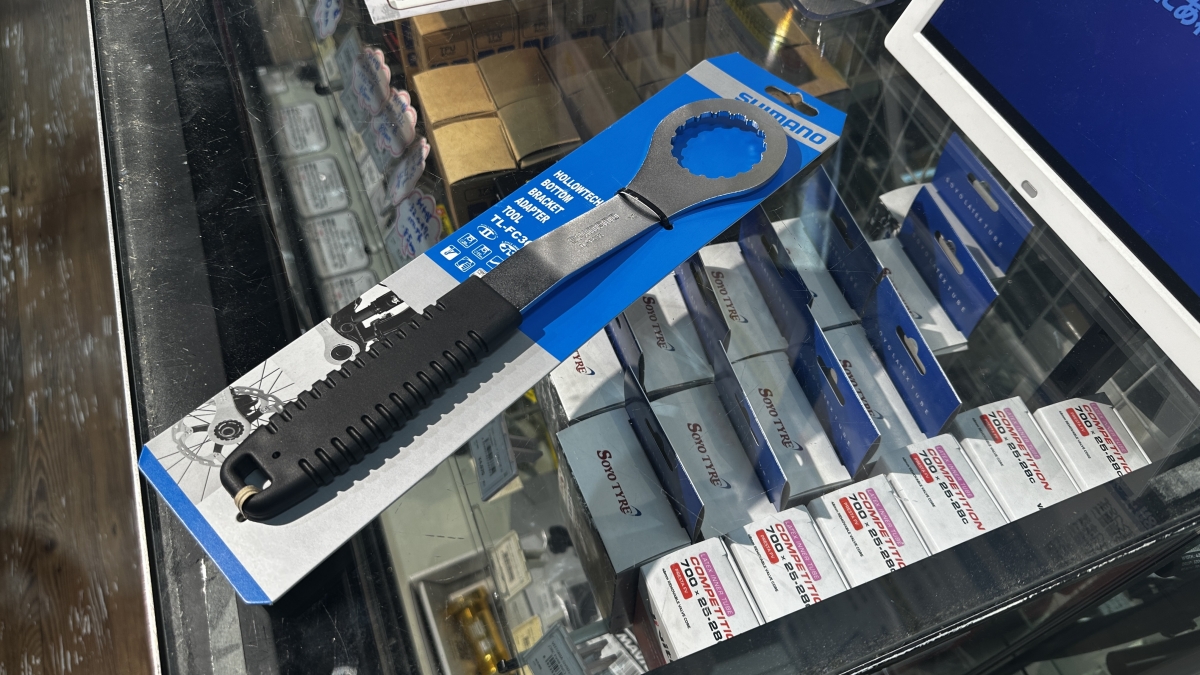 ディスクローターのAFSロックリングの付け外しにはクランクアダプター取付工具を使用しました。