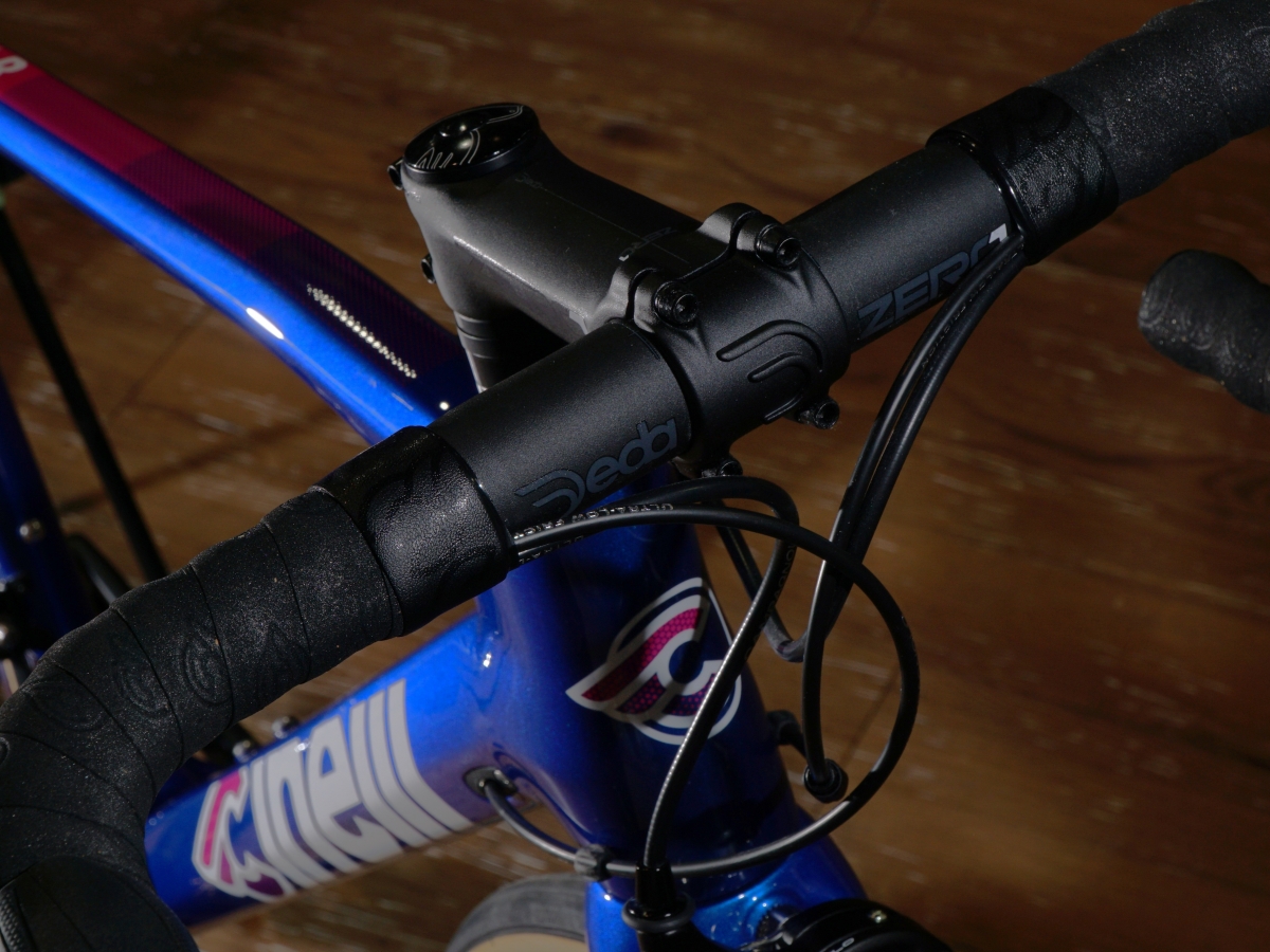 ステアリングパーツとシートポストはイタリアンパーツブランド『DEDA』で構成。