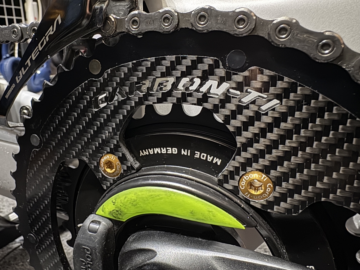 アクセントとしてチェーンリングボルトは同じくCARBON-TIのゴールドのものを付けてみました。