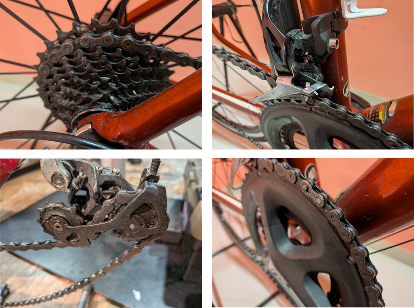掃除・注油・チェーンの状態確認を怠ると、汚れが蓄積し、走行時の抵抗が増し、変速性能が落ちます。