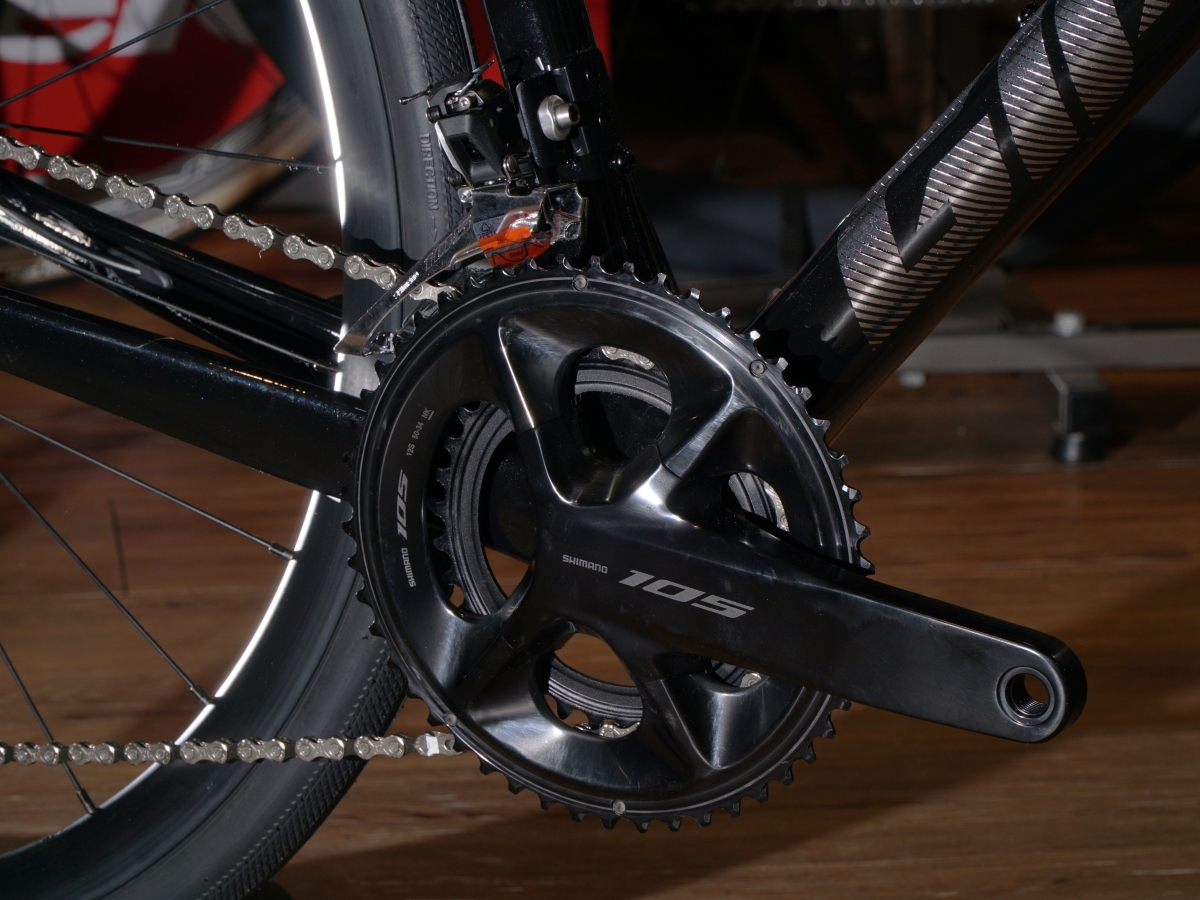 コンポーネントに『SHIMANO 105 12S』を搭載し、ロングライドで活躍しやすい『コンパクトクランク × 11-36Tスプロケット』ギアアッセンブル。