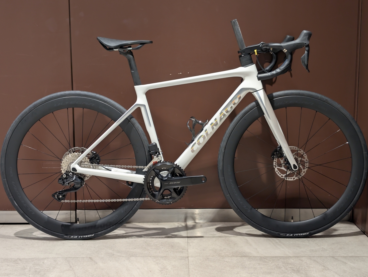 今回は通常の完成車にカーボンホイールをアッセンブルした当店限定のCOLNAGO V4 DISC 105Di2の紹介です。