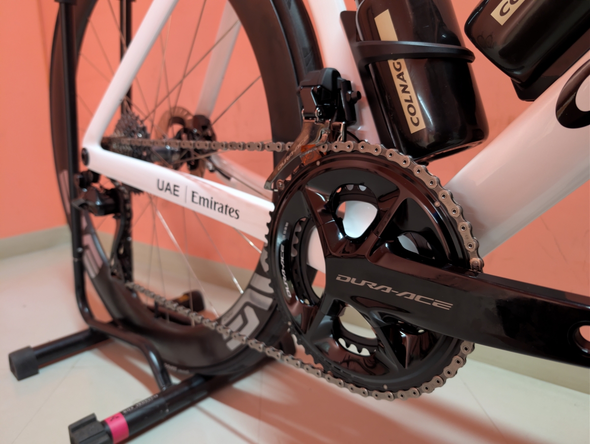 コンポーネントはシマノ R9270 DURAACEを採用しています。言わずと知れたシマノのハイエンドコンポーネントをアッセンブルしてありますので、性能面で不足に感じることはないはずです。早いものでデビューから約4年の時が流れた第10世代DURAACEですが、黒く深みのある艶感は現在でも、ハイエンドコンポーネントの中でひと際存在感を放っています。