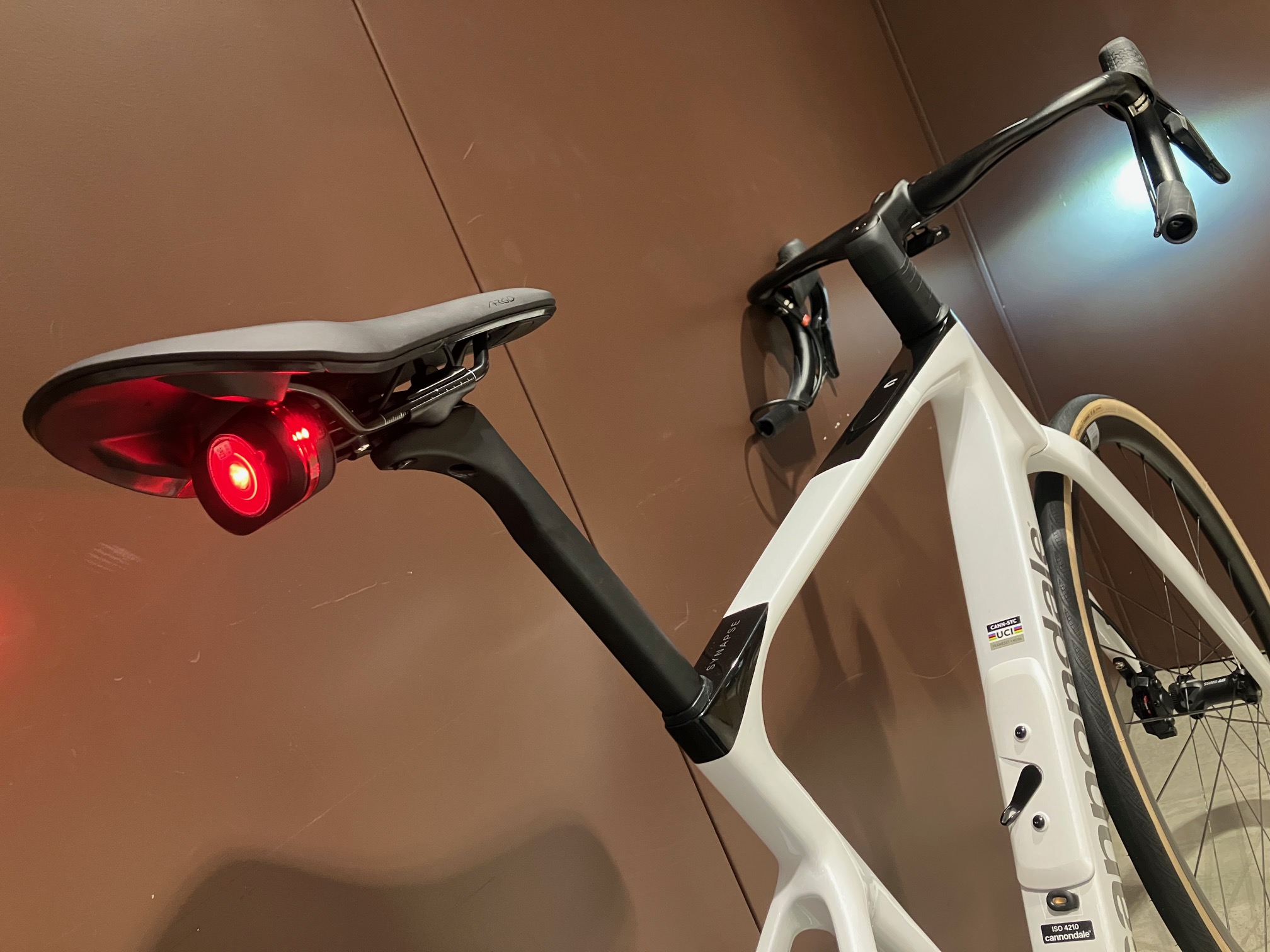 前後ライト&リアビューレーダーが標準装備となっており、フレームに内装された取り外し可能な専用バッテリーによって電源を一元管理できる素敵な機構です。
