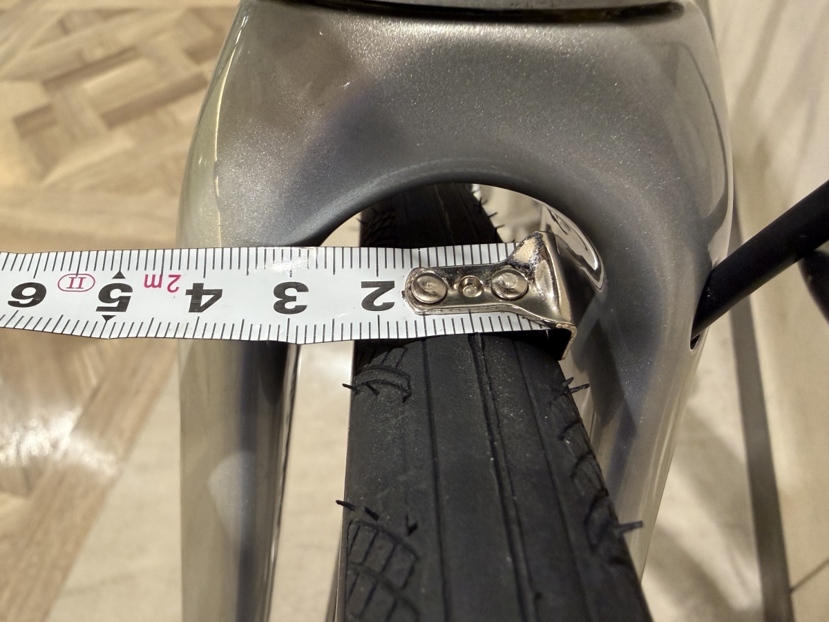 タイヤは28cが付属していますが、クリアランスはまだ余裕があります。