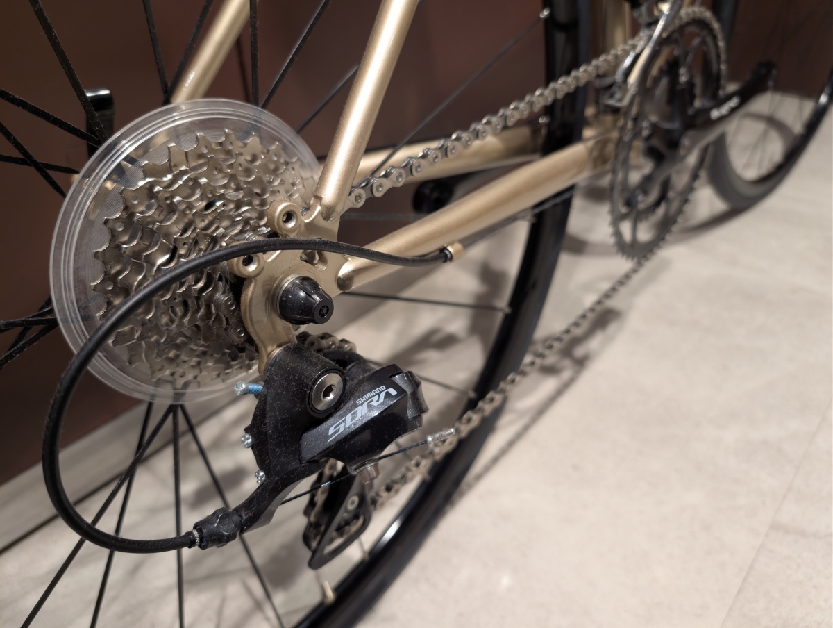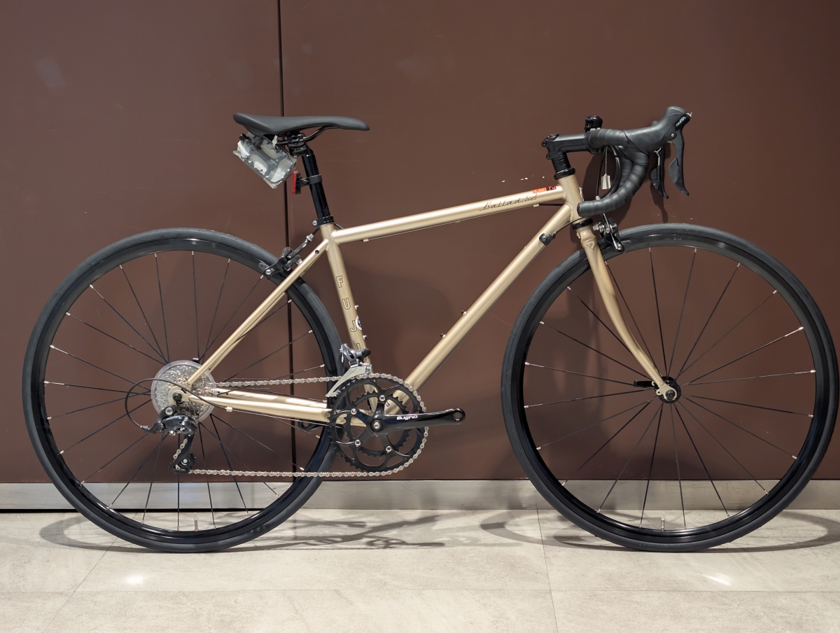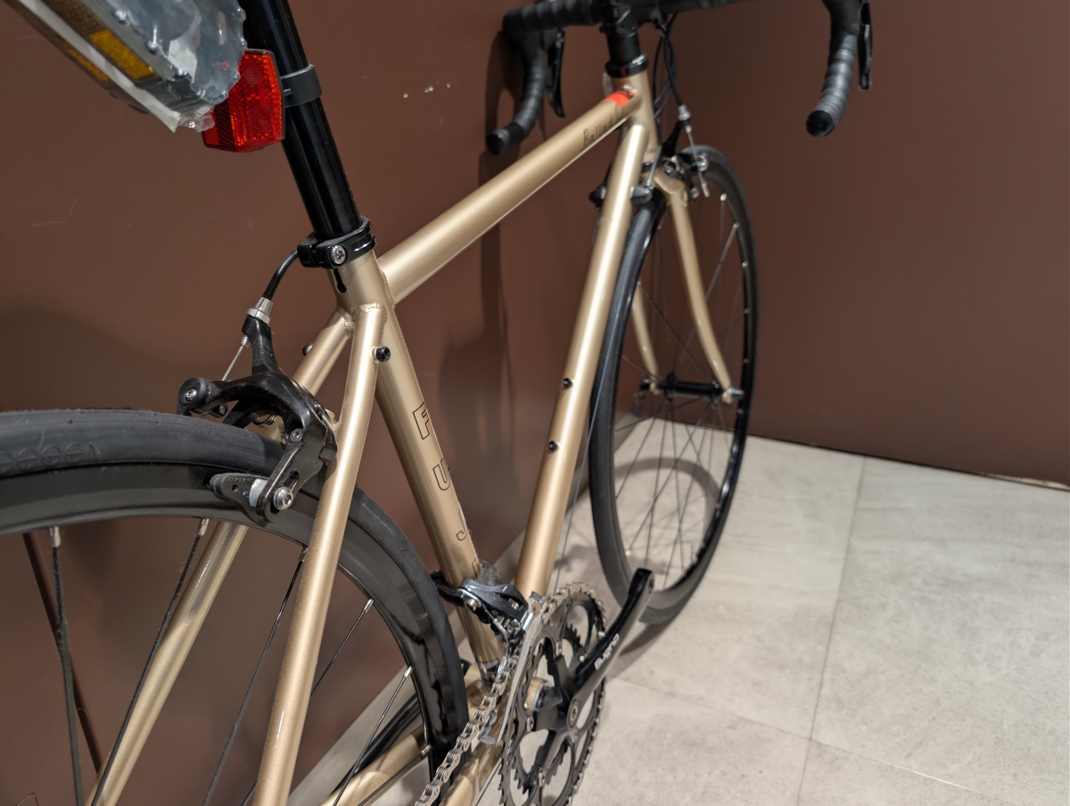 バテッド加工が施されたフレームは、無駄な重量を落としつつ、クロモリ特有のしなりのある乗り味で乗りやすく扱いやすいバイクとなっております。