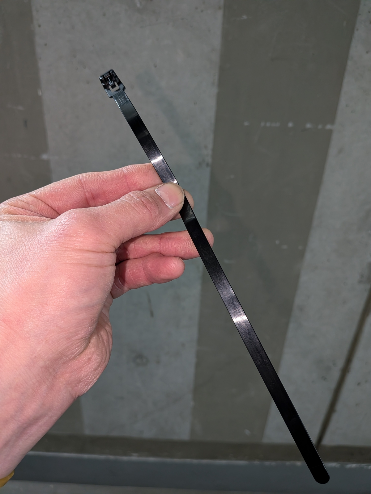 写真のように”リピートタイ”と呼ばれるタイプの物を使用すれば、ベルを外す必要が生じた場合でもニッパーで切らずに外すことができます。