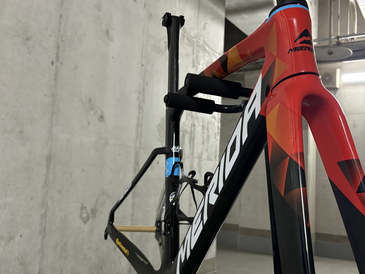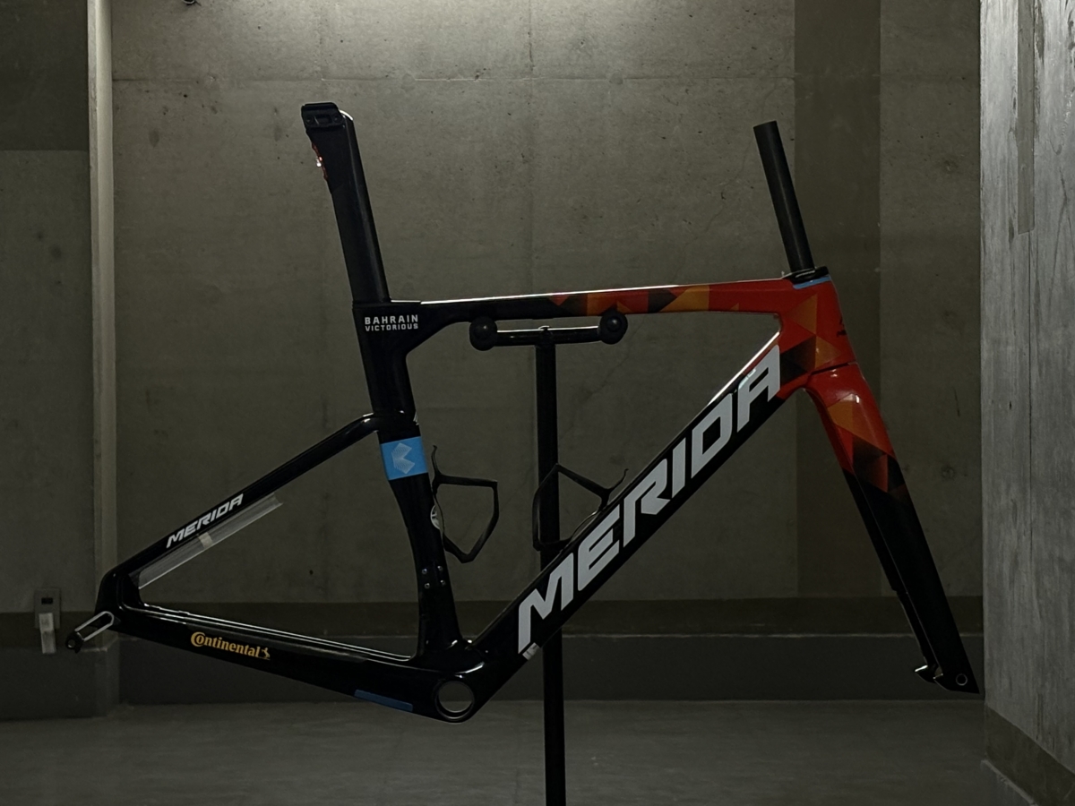 カラーリングもバーレーン・ヴィクトリアスのチームレプリカカラーとなりまして、みたことあるという方も多いいのではないでしょうか!実際私もネットやレース会場に行くと、このカラーのMERIDAをよく見かける印象があります!それほど人気なカラーリングと言ってもいいでしょう!