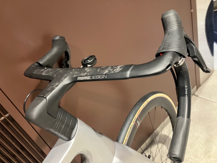 ハンドルもMOMO DESIGNとの共同開発で生まれたカーボン柄が美しい専用の一体型ハンドルが付属します!