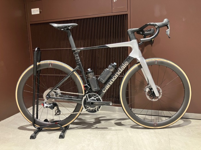 まずLAB71とは、SuperSix EVO は3つのグレードがありまして、カーボン素材がそれぞれ違うというところでしょうか、LAB71、Hi-mod、スタンダードモッドとありLAB71は最上位グレードとなりまして、ツールドフランスなどでも使用されているバイクとなります!剛性もとても高く、そして軽く、クリテリウムから、ロードレースにヒルクライムレースどんな場面でも答えてくれるバイクです。フレーム重量は約 770g(56cm)、完成車の状態で約7.2kg と、軽量で最大タイヤクリアランスも30cと軽く使い勝手のいいハイエンドバイクとなっています!
