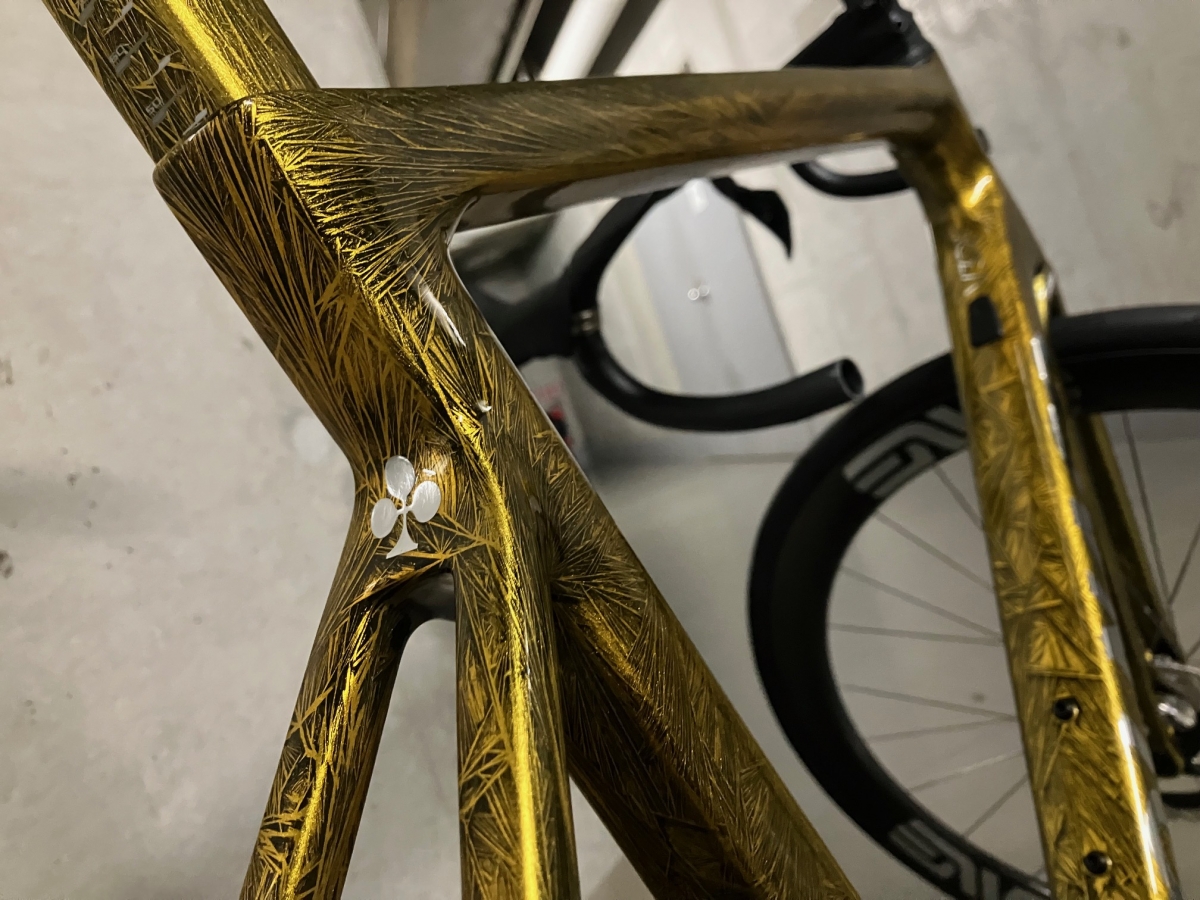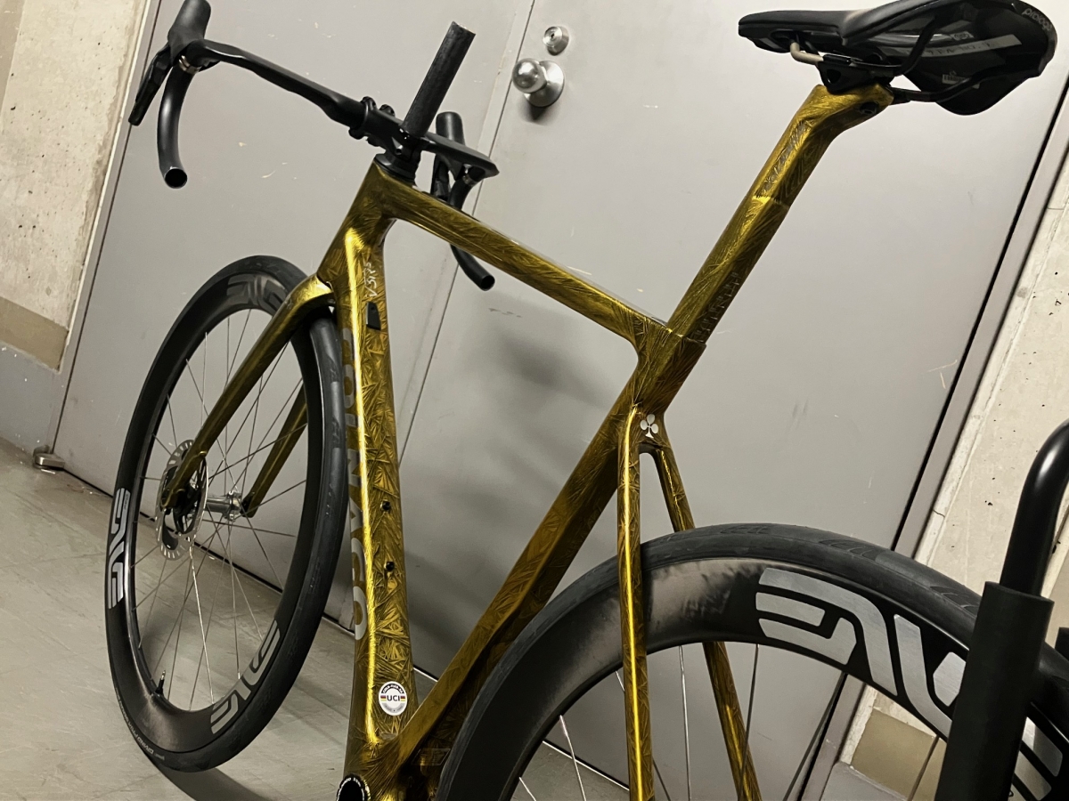 フレームセットの状態ですとかなり派手に感じますが組み上がった状態だと主張はありつつも嫌な派手さは感じない絶妙な塩梅かと思います。