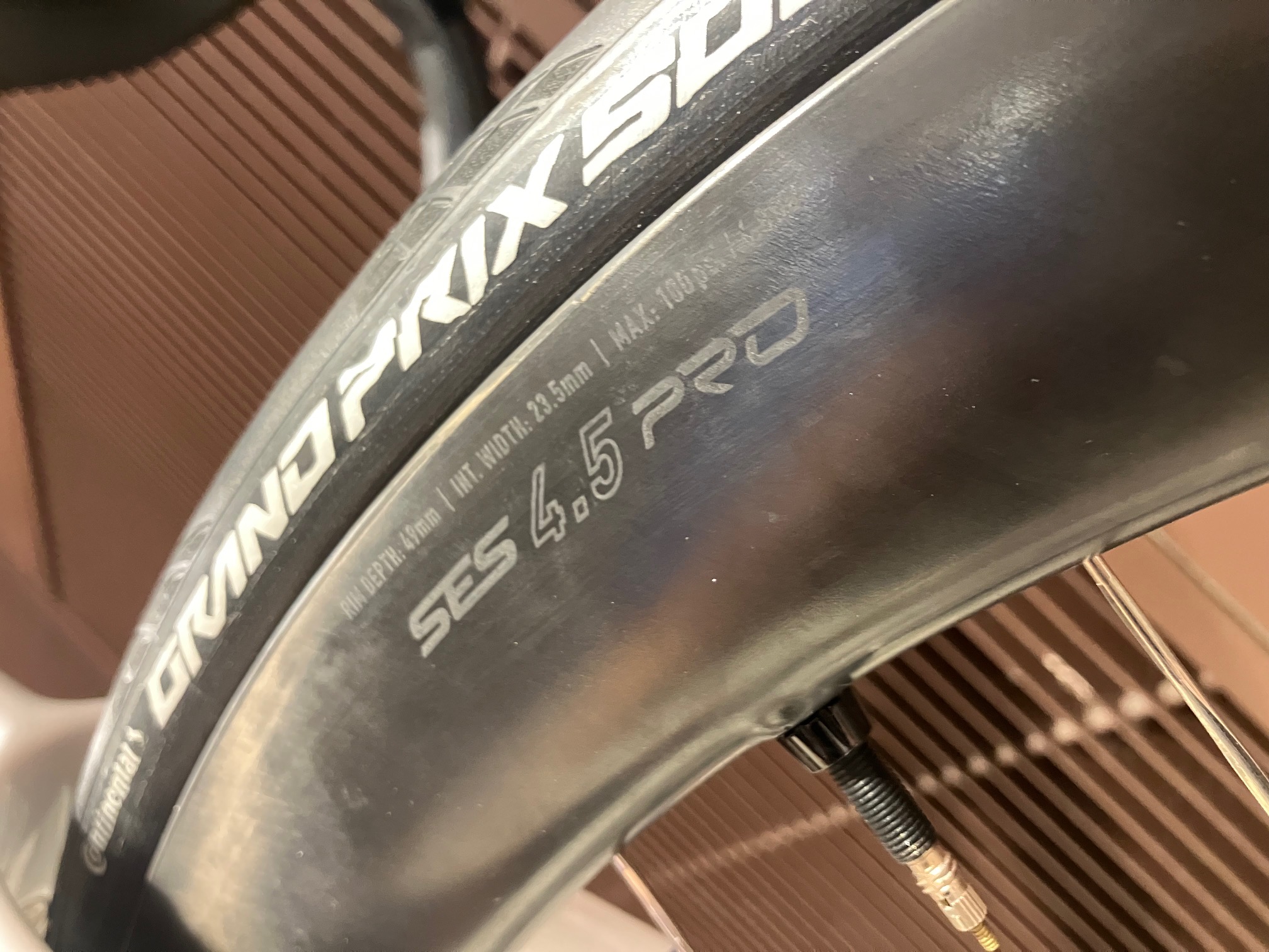 通常の完成車パッケージですとホイールもデュラエースがついてきますが選手が実際に使用しているSES 4.5 PROに換装。