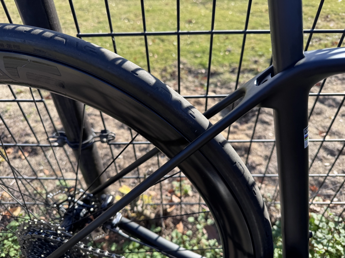 新型R5は34mmまでのタイヤに対応しております。昨今流行りのである30Cクラスのタイヤでもにゆとりあるサイズ感となっております。