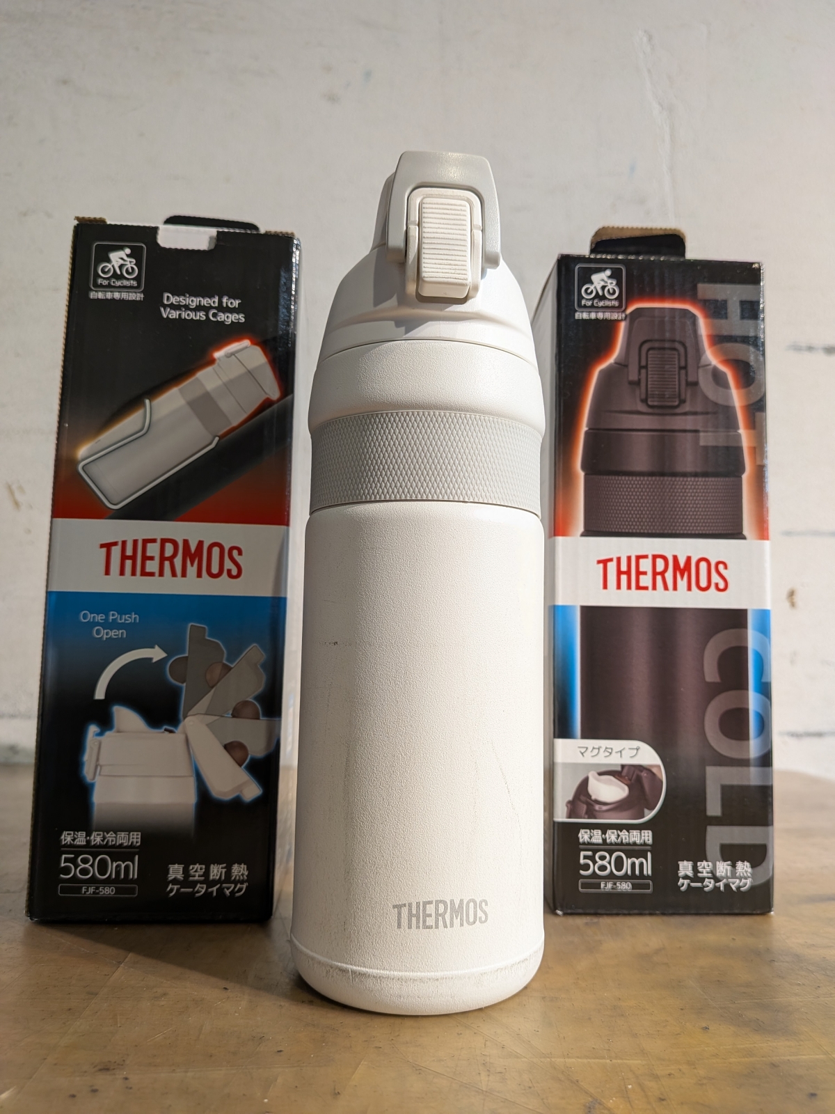 それ以来、寒い日の遠出ライドには THERMOS の水筒を携帯するようになりました。