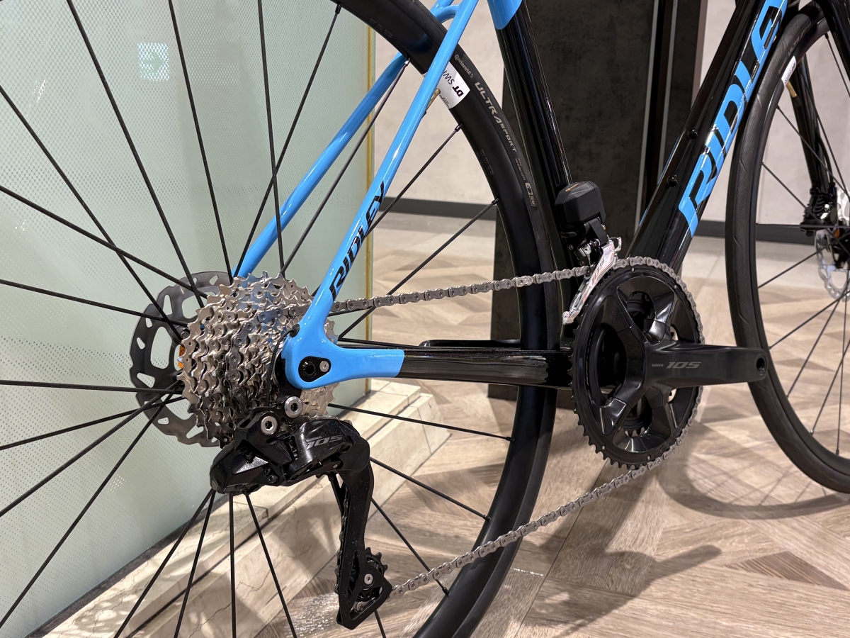 ベルギーブランドRIDLEYが以前展開していました超軽量を代名詞に販売していたモデルとなっております!踏んだときにパワーロスが発生しない剛性、荒れた路面でも跳ねない乗り心地、下りや高速巡航での安定感と言いましょうか、快適性 剛性 軽さの3つのバランスがとれたバイクとなっております!これを聞くだけでもヒルクライム特価のバイクだと伝わるのではないでしょうか!登りを楽に登りたい方やロングライドを楽にこなしたい方にぜひお勧めしてしたいです!カラーリングも青と黒の2色で美しいです!