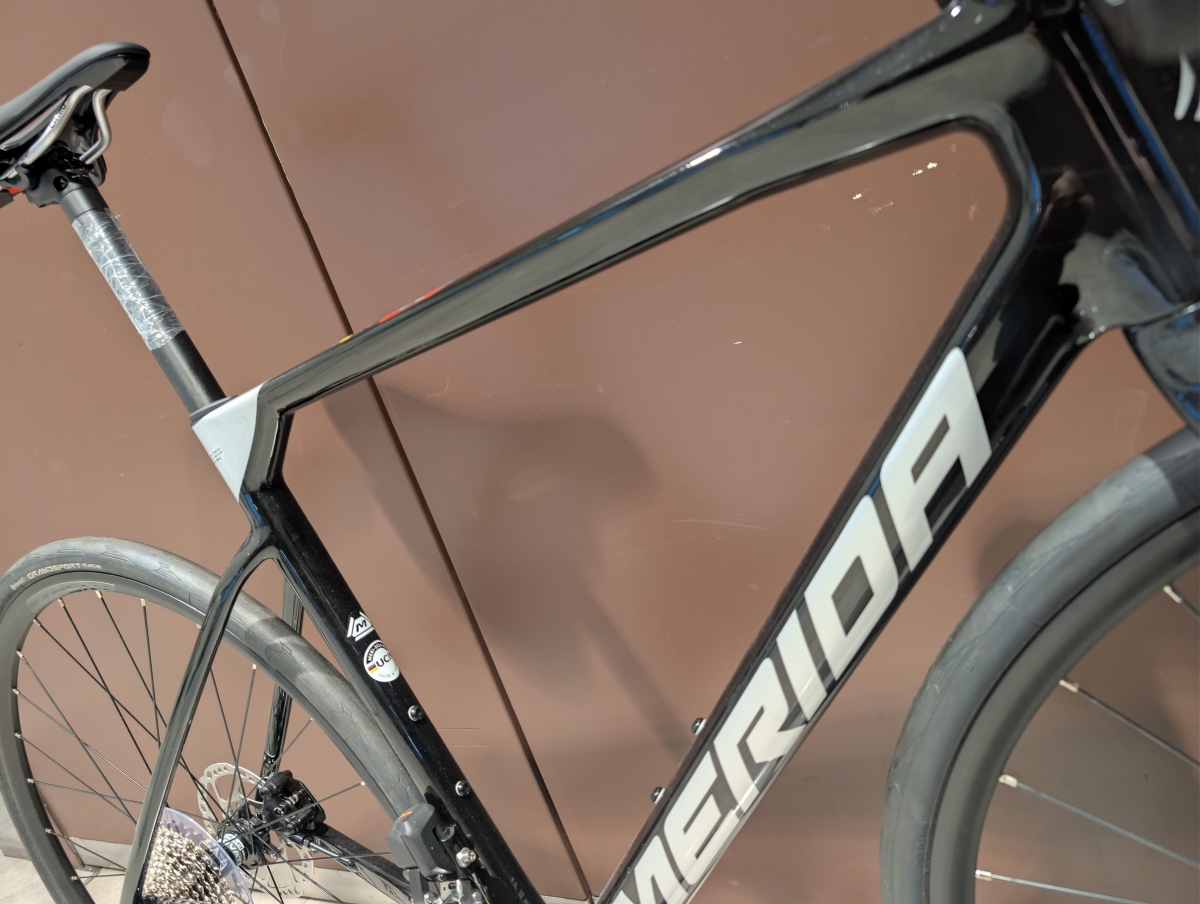 SCULTURA 6000は上位モデルのSCULTURA TEAMと同じフレーム形状を採用しつつ、カーボンのグレードを下げて剛性を落とすことによって多くの人が乗り易く手に届きやすい車体となっています。