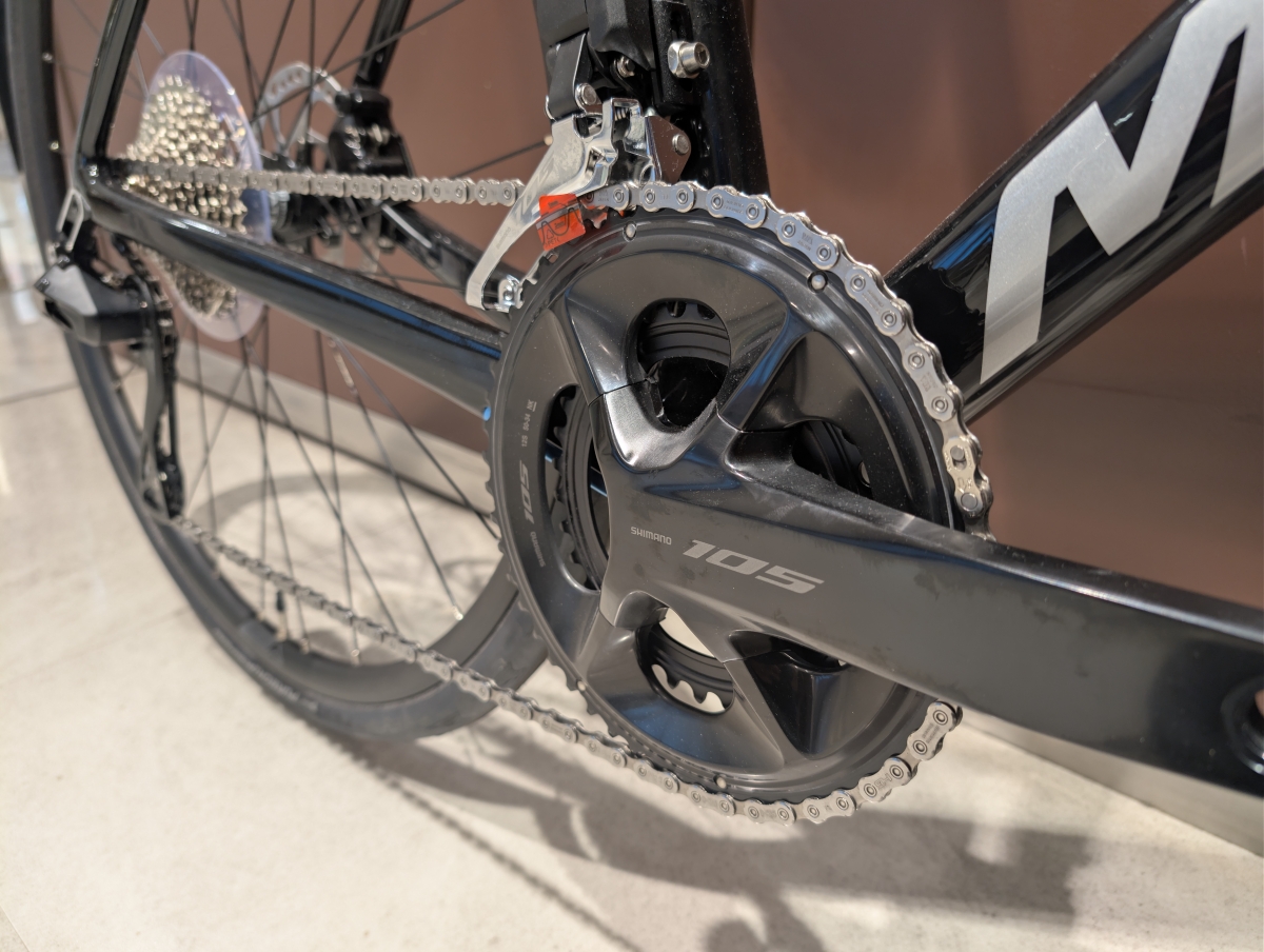 コンポーネントはシマノ 105Di2がついており、電動変速で素早い変速と軽いボタン操作が魅力のハイパフォーマンスモデルです。
