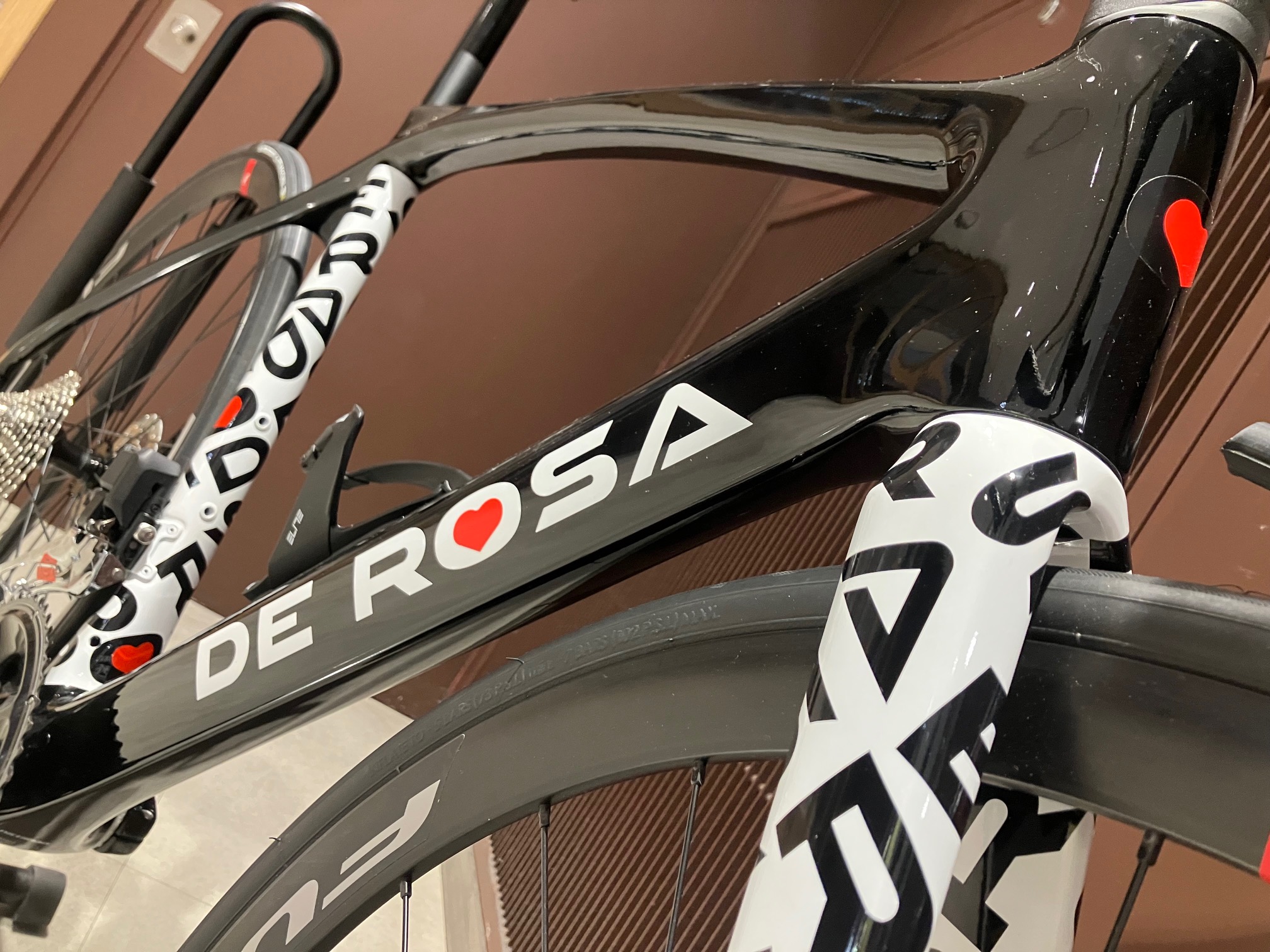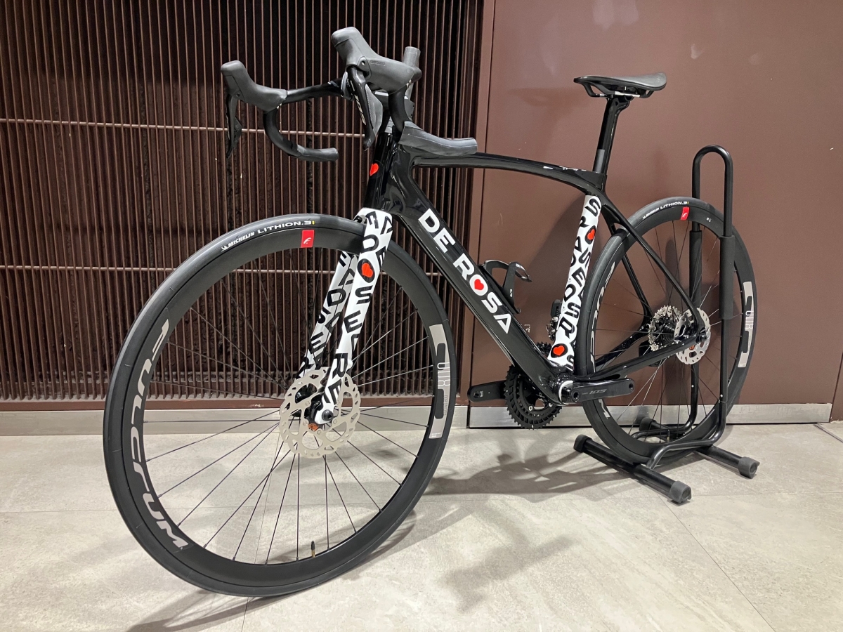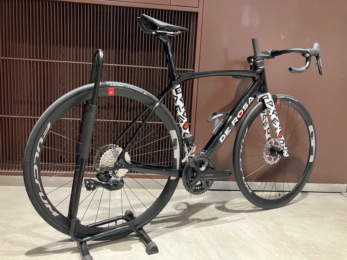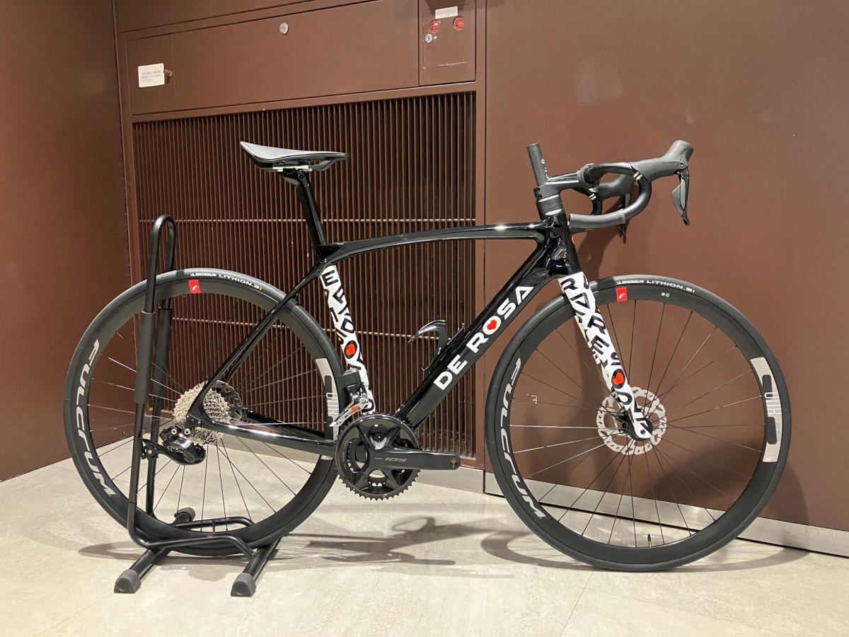 特価車には105Di2とフルクラムのアルミホイールが付いておりますが折角でしたらアップチャージにてカンパで固めてみるのも一興ではないでしょうか。