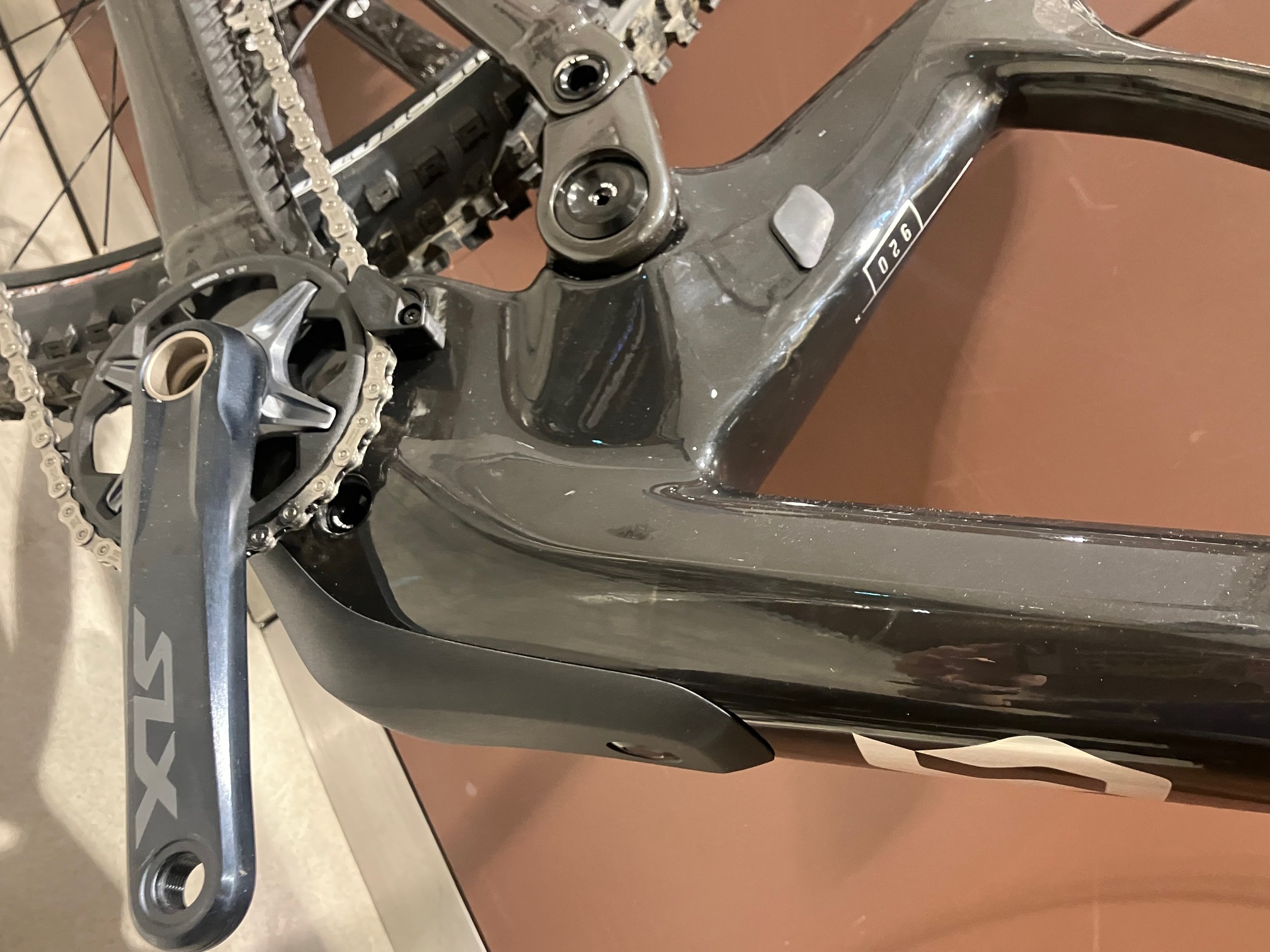 フレーム はシンプルながらディティールの詰まったLAWカーボンカラーとなっているので飽きが来づらく傷も比較的目立ちにくいかと思います。全体がブラックで統一されているのでマウンテンバイクならではのカラーカスタムも捗りますね。