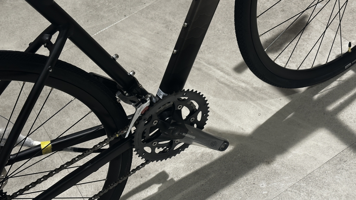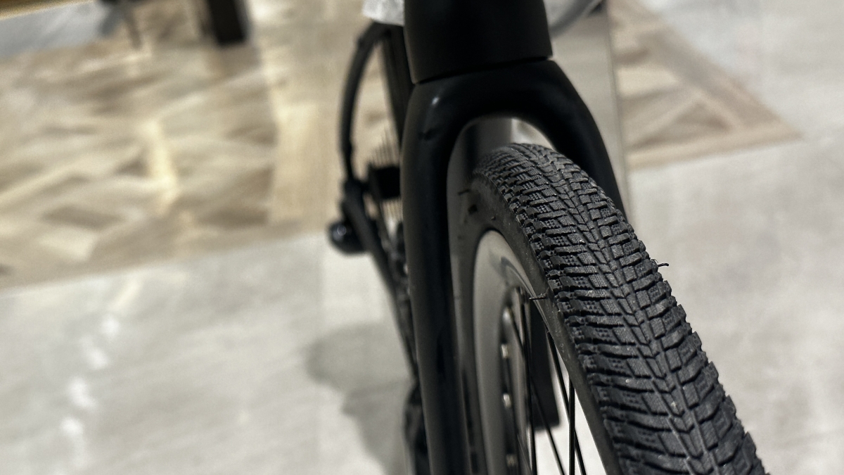 標準は32Cですが、最大実測40Cまで対応しています。タイヤを替えれば、オンロードだけでなくグラベルも走れるようになります。フェンダーやリアキャリアの取り付けが可能で通勤・通学から、荷物を積んだロングツーリングまでこれ1台でこなせます。