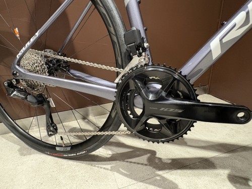 コンポーネントは105Di2が付属しております。長い距離のライドで手が疲れていても押しやすいですし、何より楽なのでオススメのポイントです。