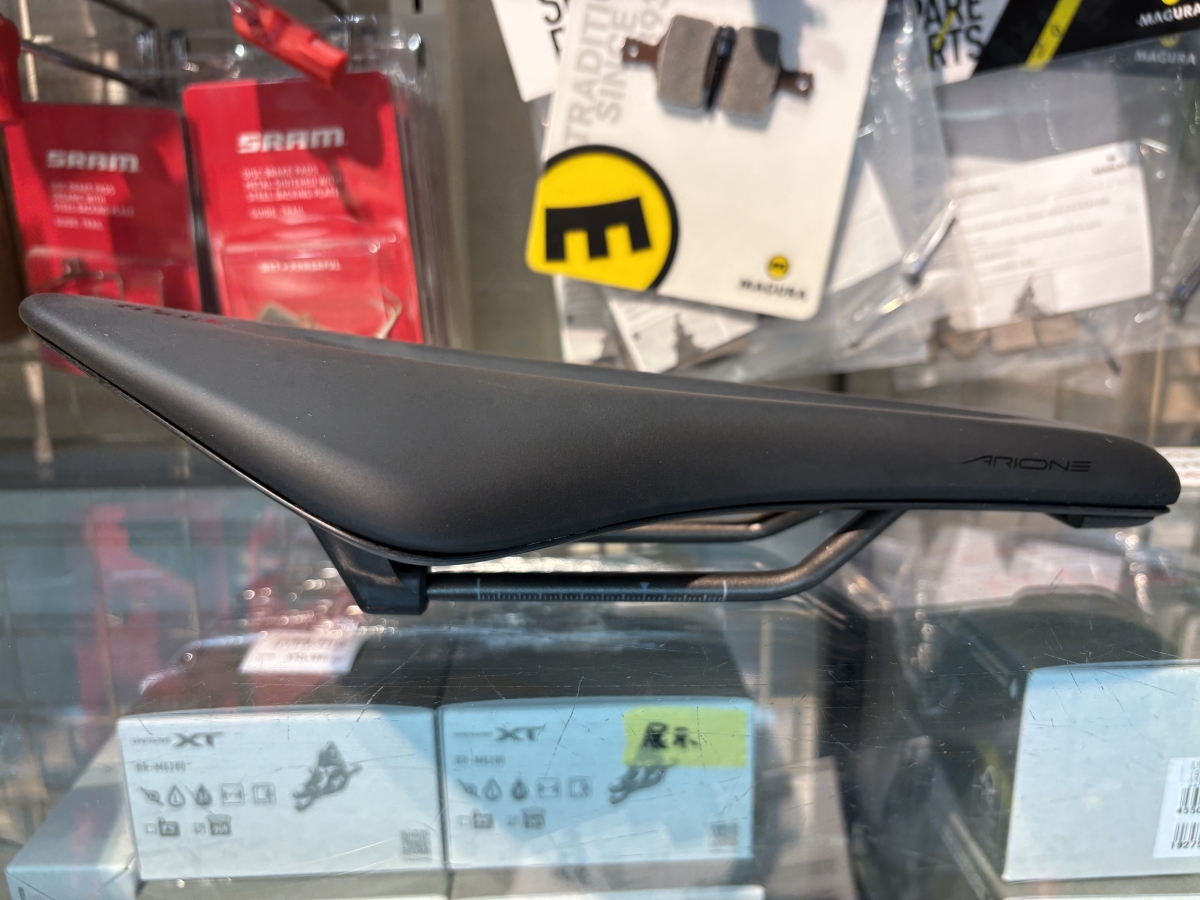 長くフラットな座面でサドル上で前後に移動がしやすく、ポジションを取ることができるARIONEシリーズがモデルチェンジになりました。サドル後部にあったクリップは姿を消し、ボトルケージの取付けを可能にするオプションリンクを装着可能にしています。サドルレール後端に挟むタイプのボトルケージは使用できないですが、工夫が凝らされています。