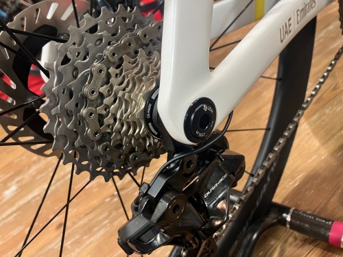 コンポーネントはデュラエースが付属し妥協のない一台、プロと同じ仕様となっております。ハンガーもUDHとなり、トラブル比較的少なく、入手もしやすい物となっています。