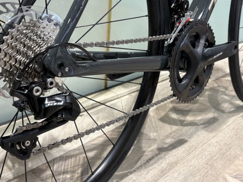 コンポーネントは11速の105機械式がアッセンブルされ、12sも余してしまう、コスパ重視のバイクが欲しいというお客様に強くオススメしたいです!勿論レースでも使用できるスペックです。
